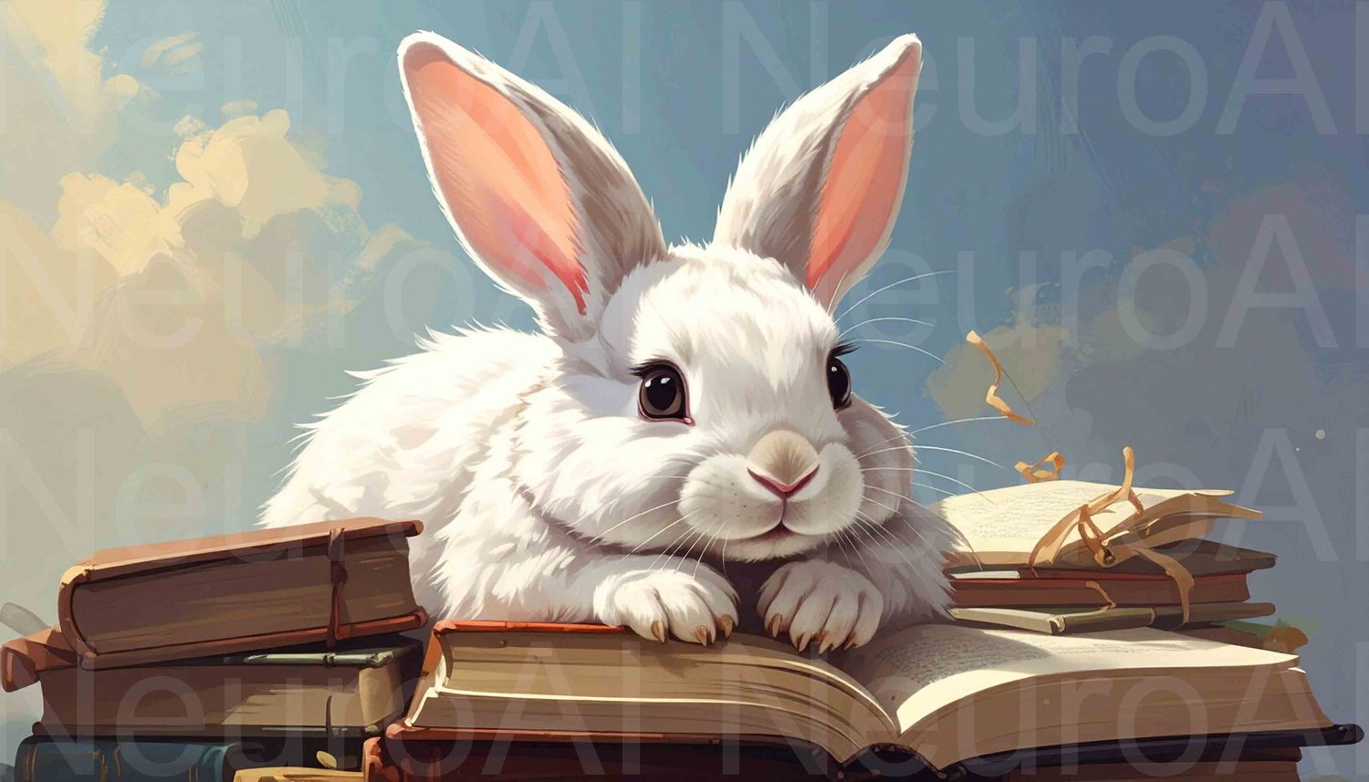 Adorable bunny resting on stack of vintage books