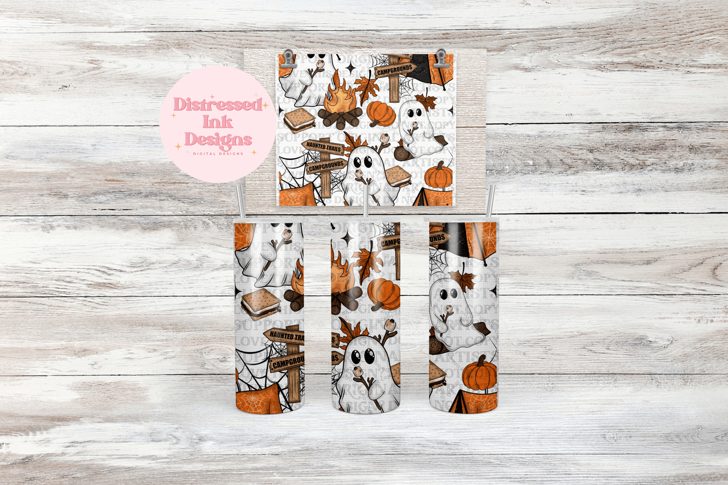 Cute campfire ghost 20oz tumbler wrap png
