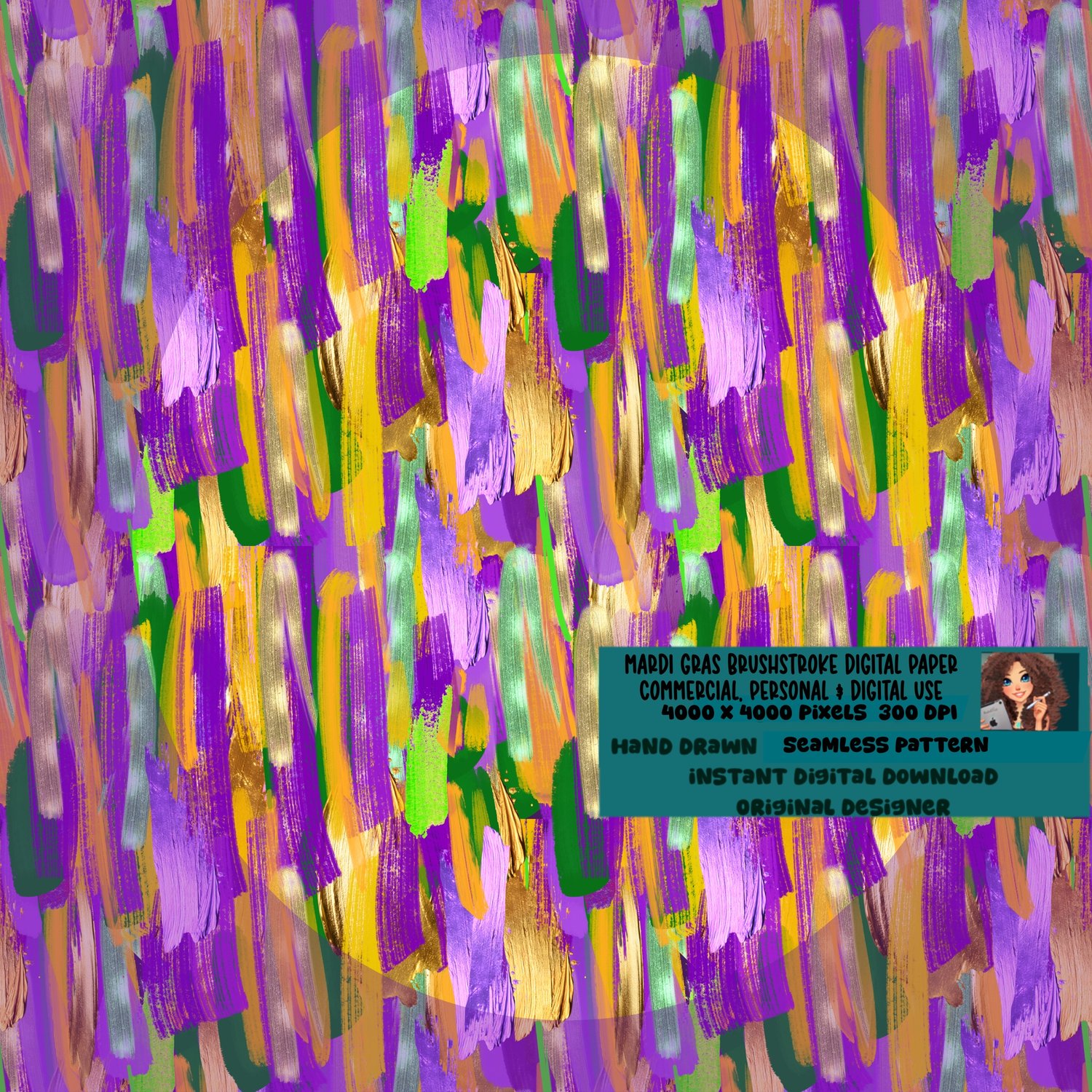 Mardi Gras Brushstrokes Seamless Digital Paper