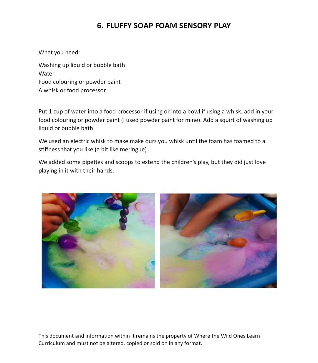 They include the recipes of any sensory play resources that we made and instructions on how to make them, with step by step guides and photos.