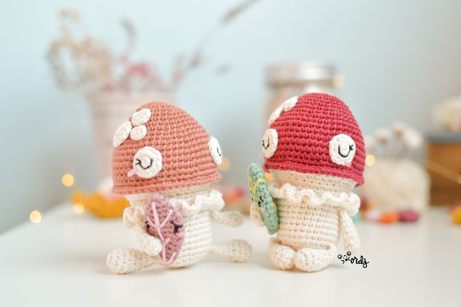Patrón o guía de tejido amigurumi de la seta Amanita y su amiga la hoja Li 🍄🍂 En Español y en Inglés (U.S. Terms)