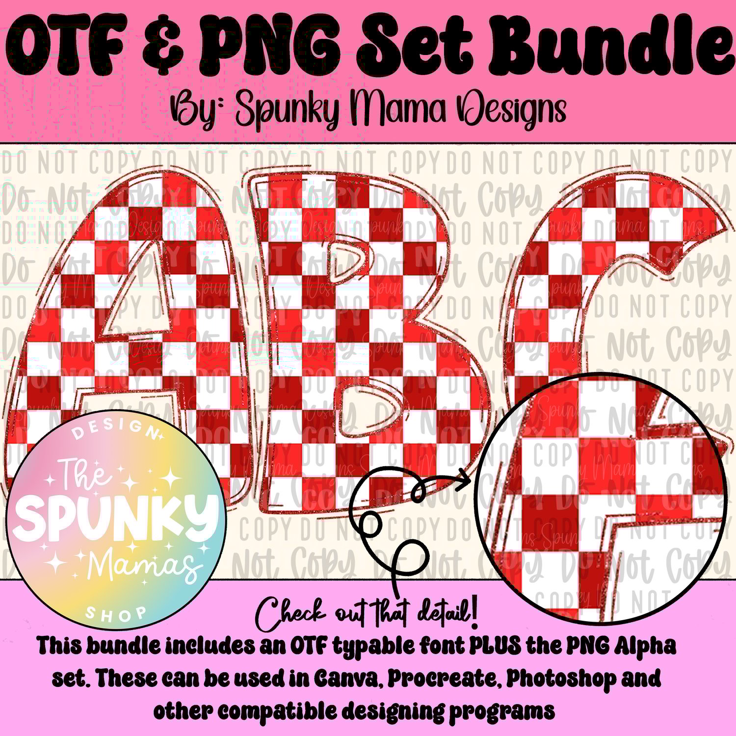 Double Red Checkered OTF Font & Digital PNG Alpha Set
