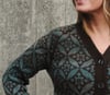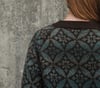 Cathedral is an all-over colourwork cardigan or V-neck sweater, featuring a stranded colourwork pattern inspired by the stained-glass windows of cathedrals.