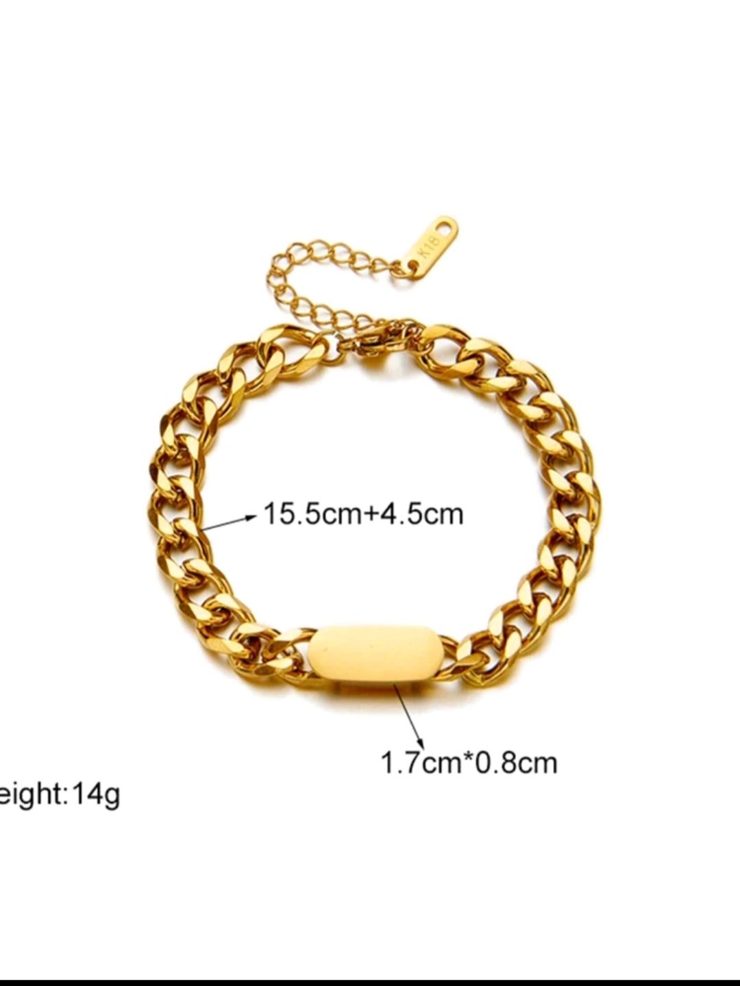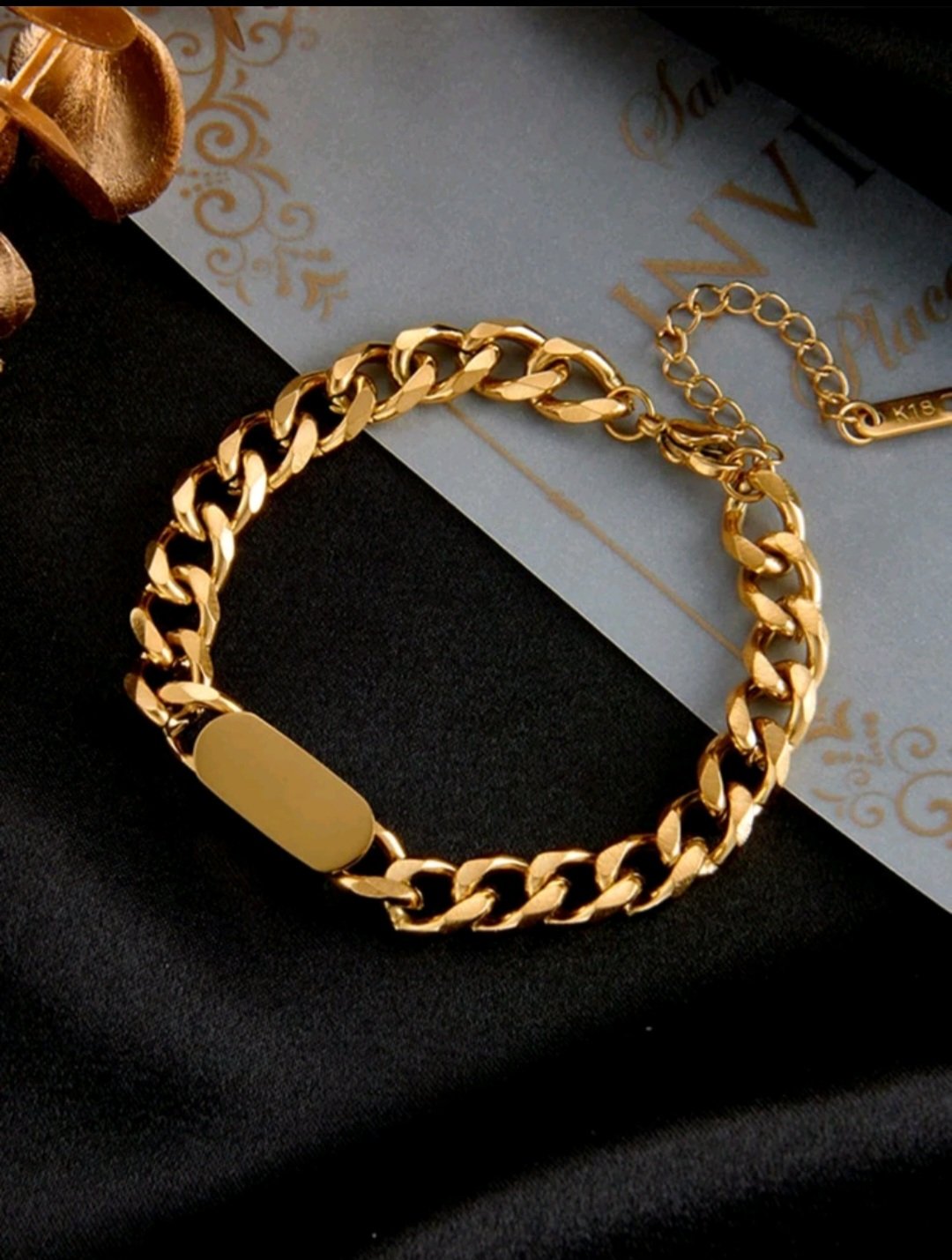 1pc Golden Thick Chain Titanium Steel Metal Vintage And Minimalist Style Bracelet Jewelry