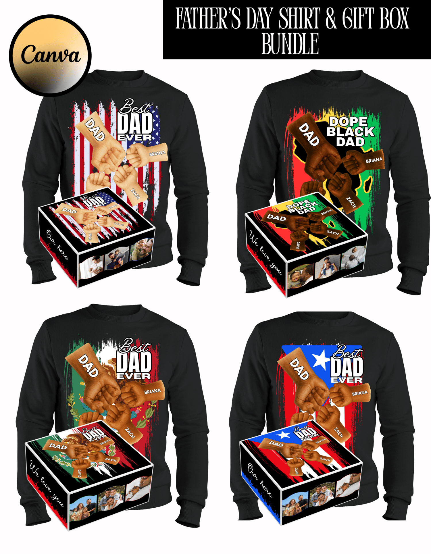 Make Father's Day gifting easy, creative, and totally custom with this Editable Shirt & Gift Box Template Bundle! Designed for Canva Pro, this bundle includes 4 unique shirt design templates and 4 matching gift box label sets sized to fit standard 8x8x4" boxes.