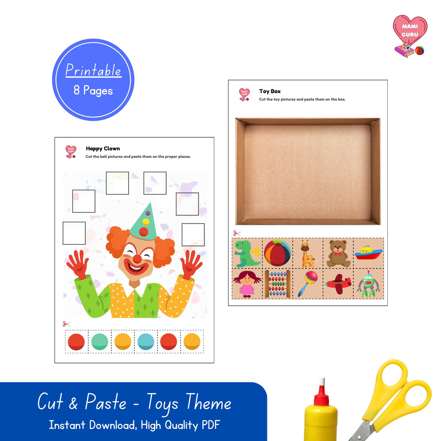 Perfect for preschool and kindergarten-aged children, this printable set includes 8 colorful pages designed to enhance fine motor skills, visual recognition, and problem-solving abilities. Each page features fun, toy-themed cut-and-paste tasks such as matching, sorting, puzzles, and color identification. Ideal for classroom centers, homeschooling, or quiet-time activities.