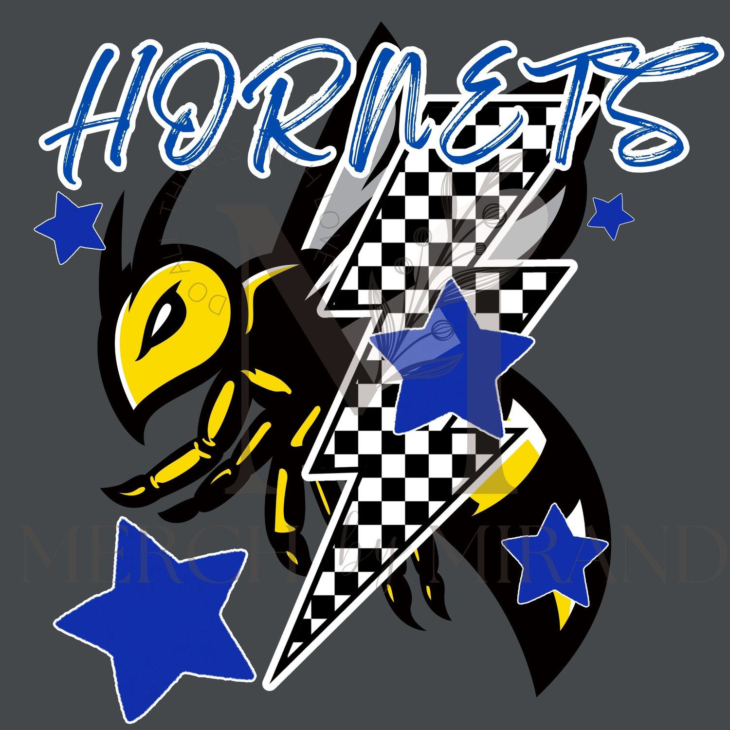 Hornet Mascot Blue | Sublimation Design | Digital Download | School Spirit Shirt PNG | DTF Design | Lightning Bolt-Checkered with Stars - Hornets
