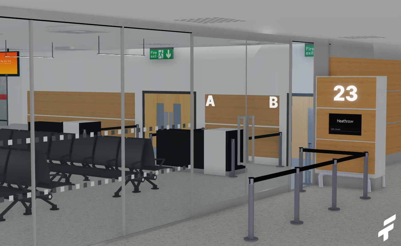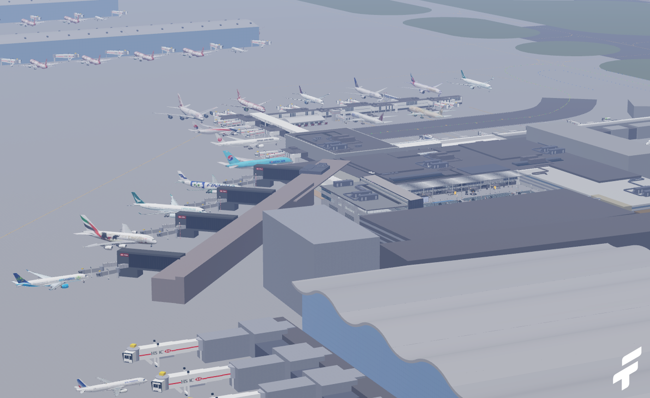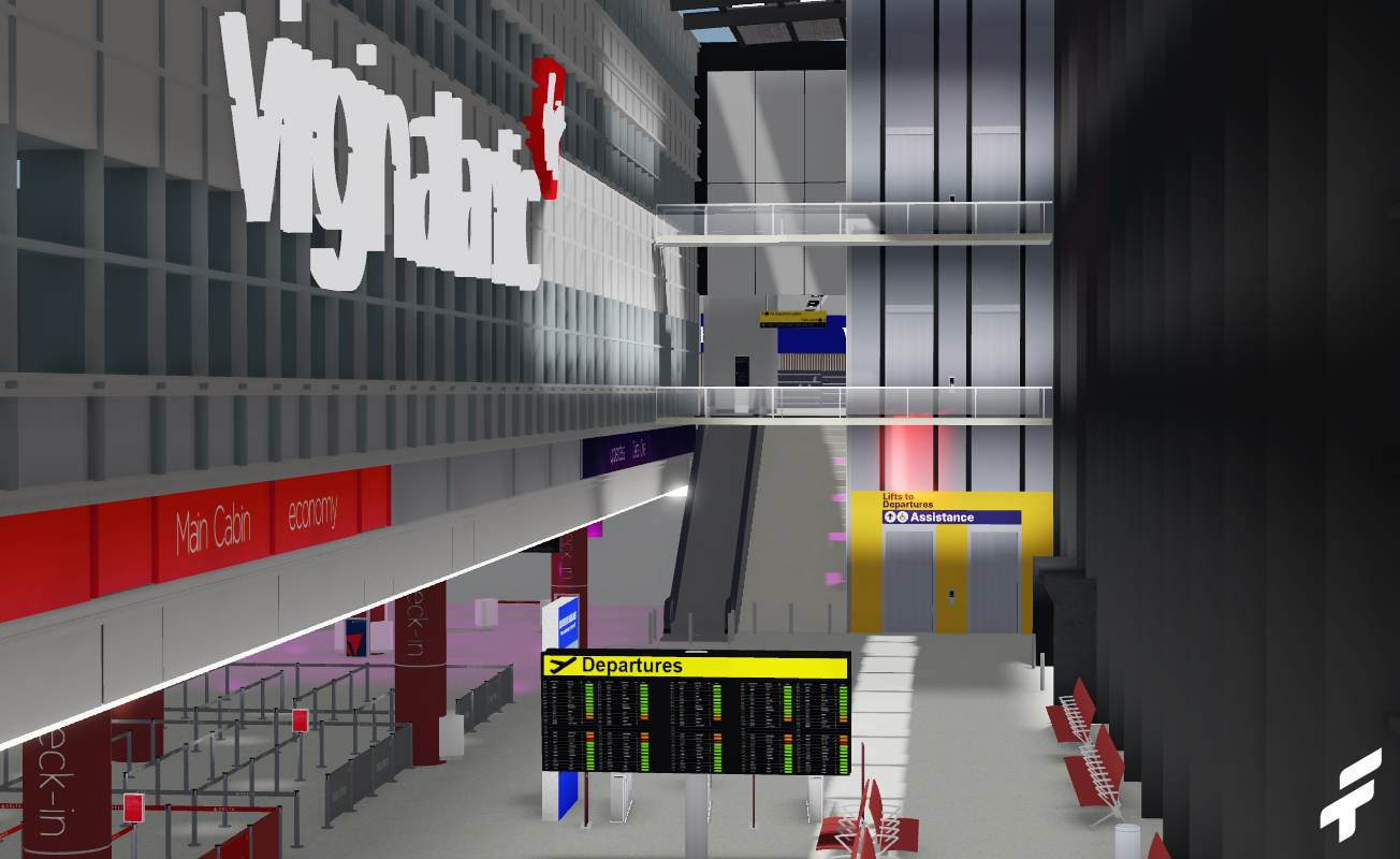 -Detailed interior (T3) with check-in, security, gate areas, airport stores, and other basic amenities.