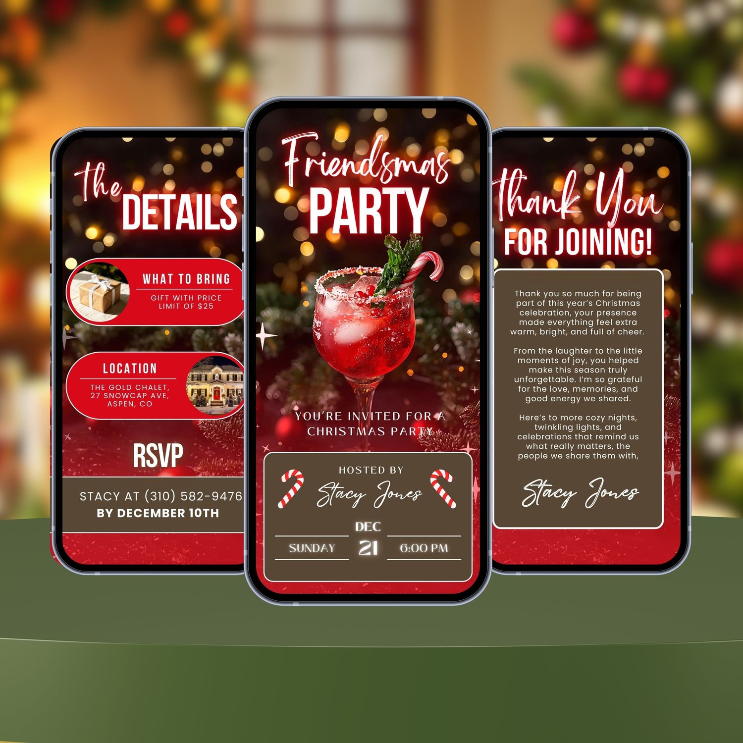 Friendsmas 2025 Invitation, Xmas Cocktail Party Invite Christmas, Merry Christmas Digital Video Invite (Animated Canva Template)