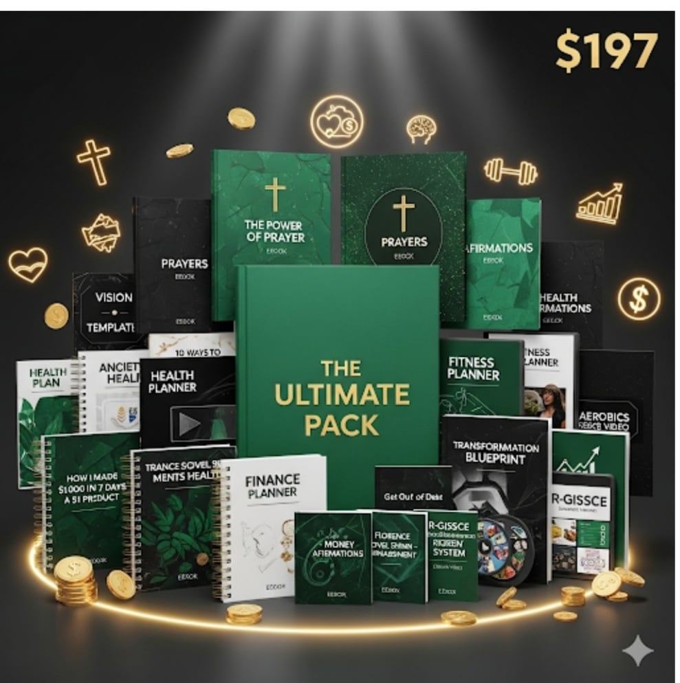 The Ultimate Guide Pack is your complete library for success in faith, wealth, and health โ all working together. Itโs not just resources. Itโs a lifestyle upgrade that equips you to thrive in every area of life.