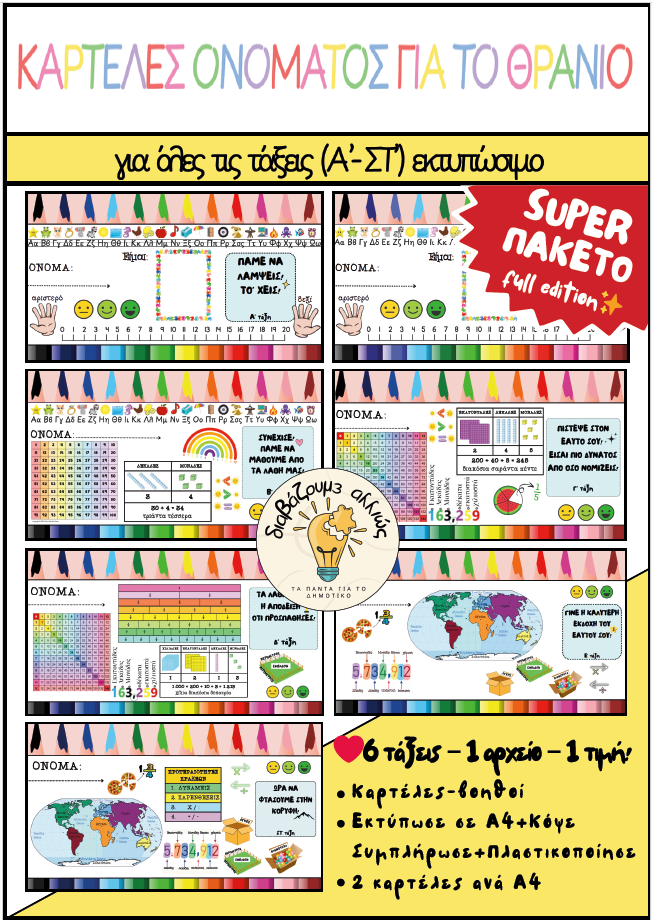 Full Value Pack (A'-ΣΤ') | Χρωματιστές ΚΑΡΤΕΛΕΣ ΟΝΟΜΑΤΟΣ για το Θρανίο