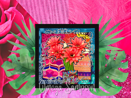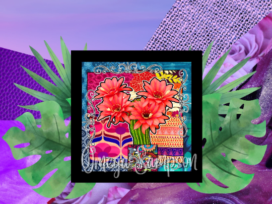 The poster is a mixed media collage illustration of cactus landscape against a retro patchwork background. It is truly a retro visual delight. This is a vibrant piece that would make a lovely addition to any space or home. The poster can be printed in smaller sizes and as large as 12x12 inches. The posters can also be mounted on wood, canvas, and other hard surfaces. This can be a stunning gift for graduations, housewarmings, birthdays,or for friends who appreciate cactus and nature landscape art.