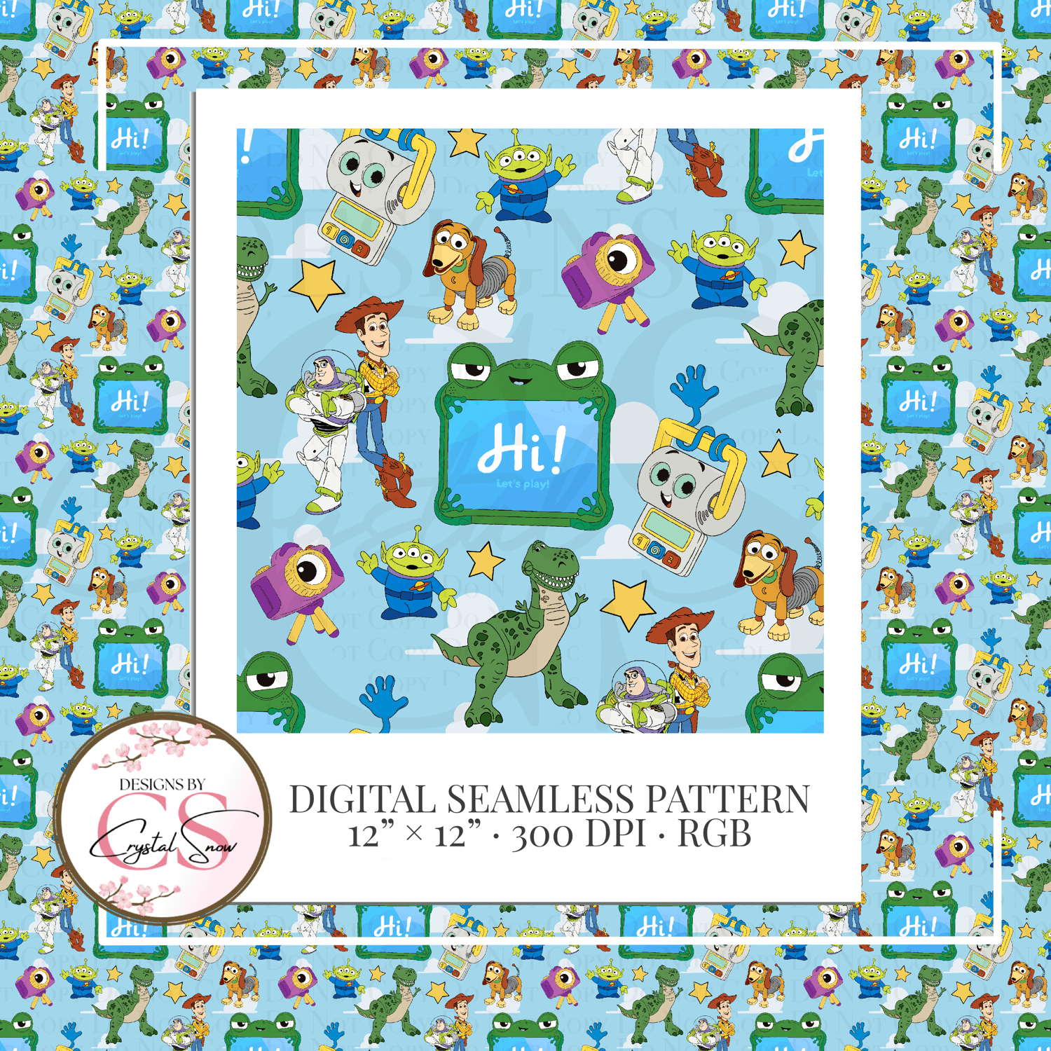 This seamless digital pattern was created as a nostalgic tribute to beloved childhood animated toy characters — reimagined in a playful repeat design perfect for creative projects.