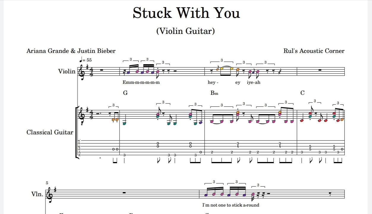 Ariana Grande Justin Bieber - Stuck With You Violin Guitar Musical Notes Tabs PDF Video