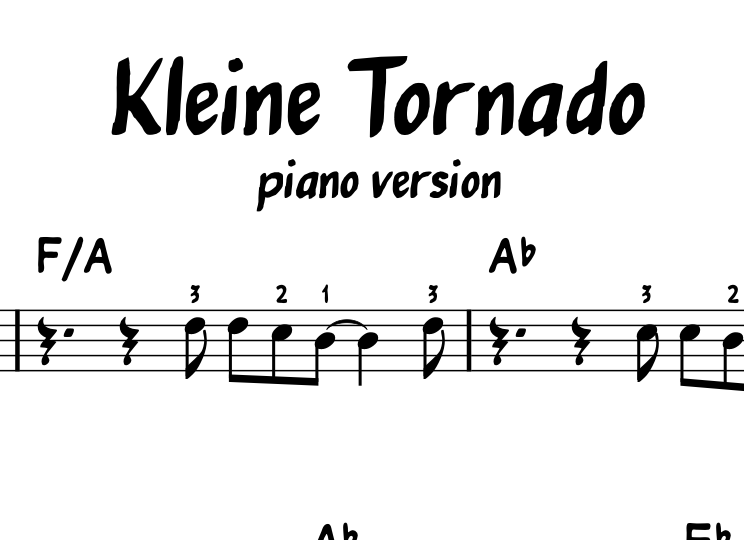 Piano version of Kleine Tornado. Includes piano intro and fingerings