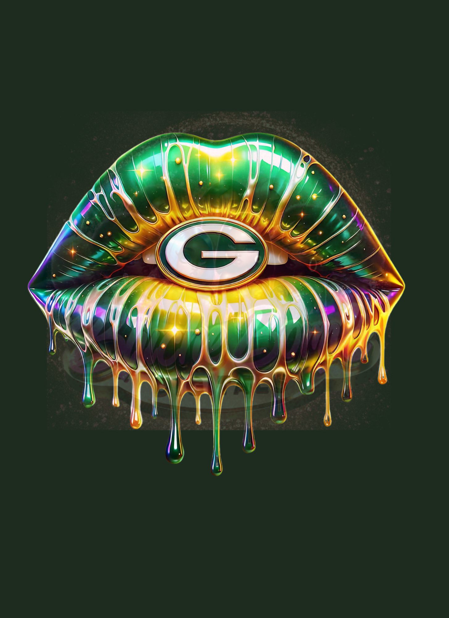 Make a bold statement with this high-quality PNG design featuring glamorous, dripping lips with a vibrant, Green Bay Packers-inspired theme. Perfect for football fans who love a touch of sparkle and glam, this digital art is ideal for creative projects, from apparel to decor.