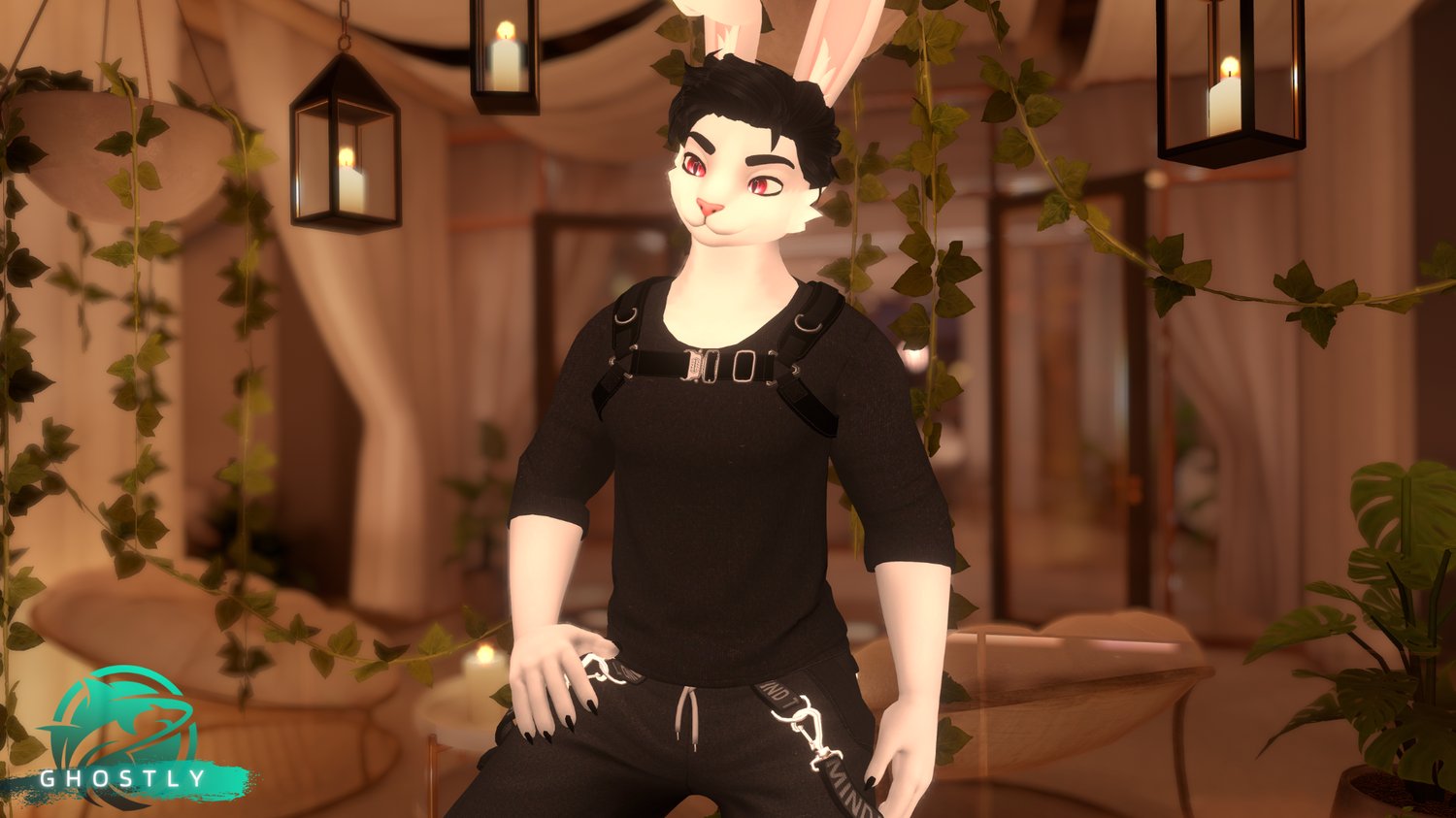 Introducing the Ghostly Male Bunny. A customizable male bunny avatar base model for VRChat. Halloween Special: Handsome Vampire Bunny!!! 😉 🎃