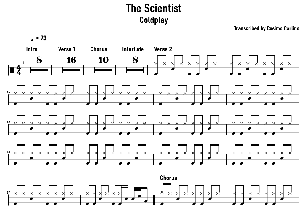 The Scientist - Coldplay - Full Drum Transcription in PDF