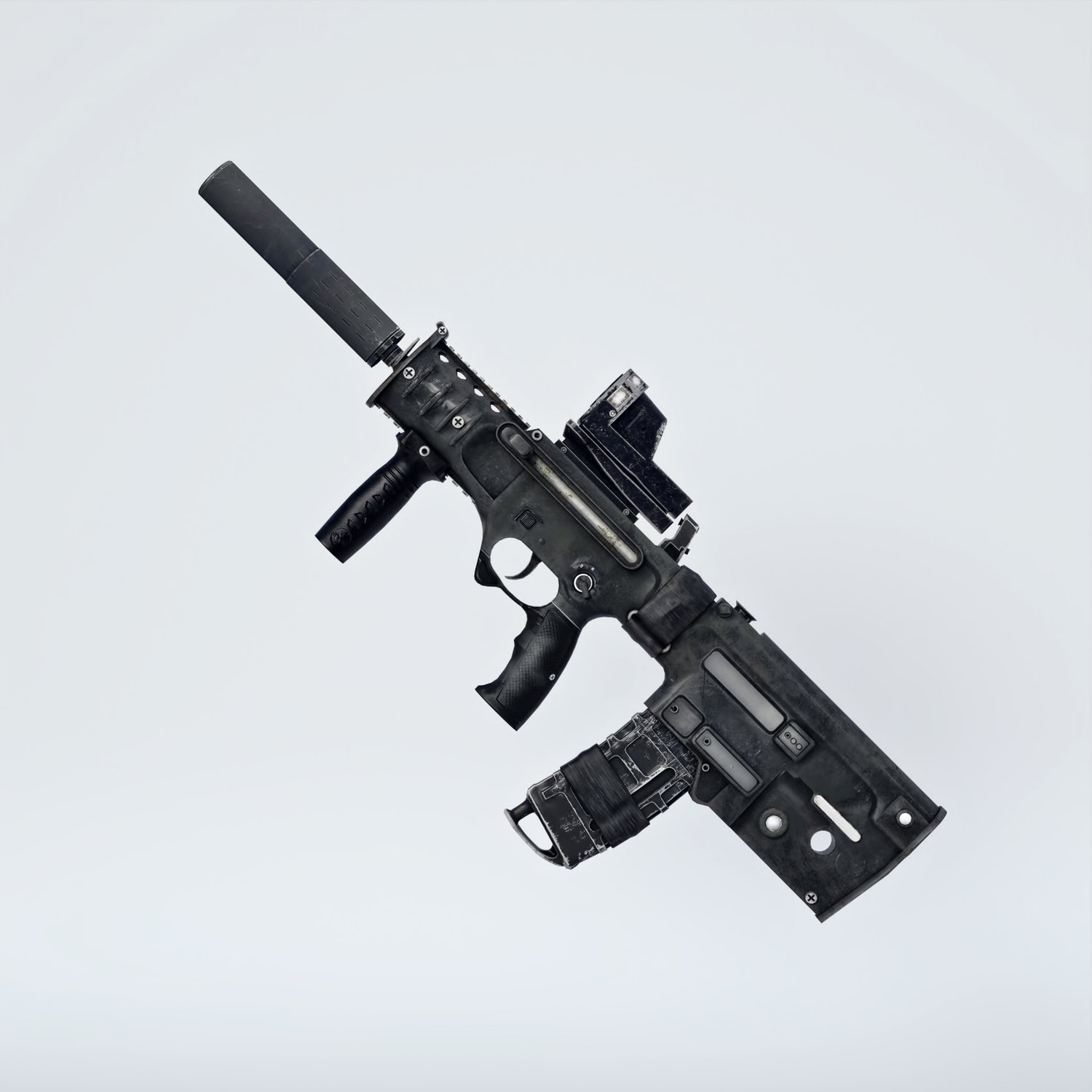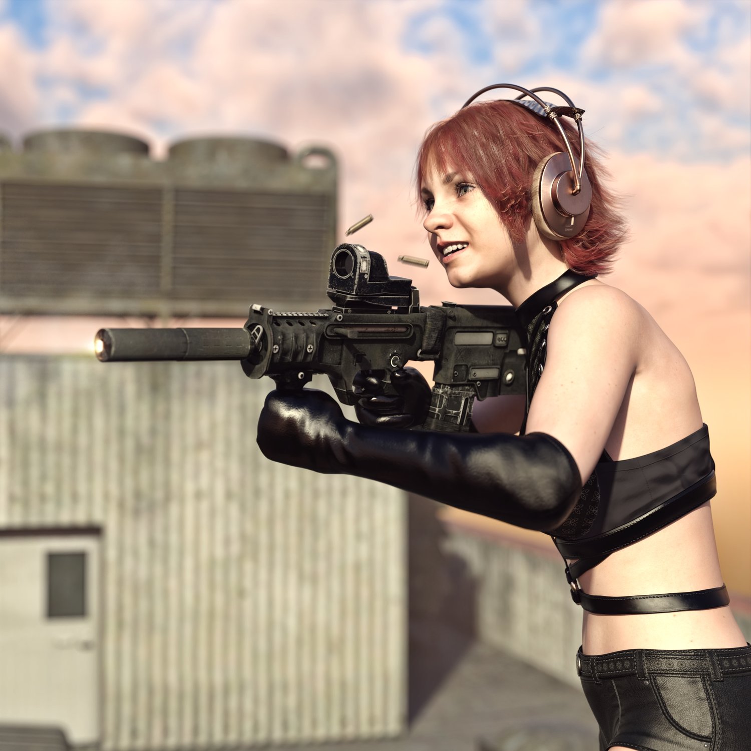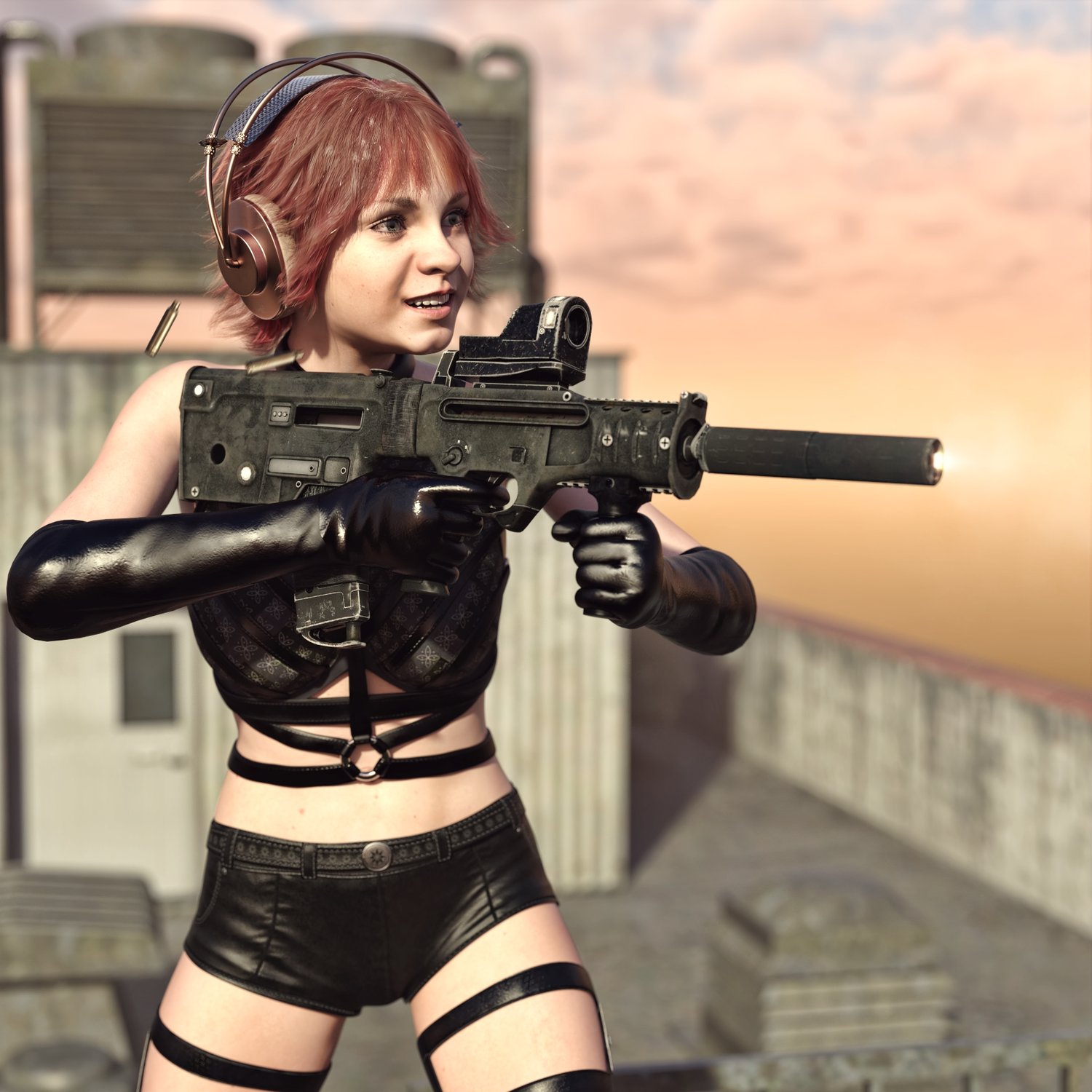 A cool tactical short assault rifle. Picatini rails, sights, body, compact size. Includes a red dot and a silencer for covert operation. Converted and rigged for use in DAZ. Trigger, stock, safety, bolt, cover etc also rigged for more realistic pictures.
