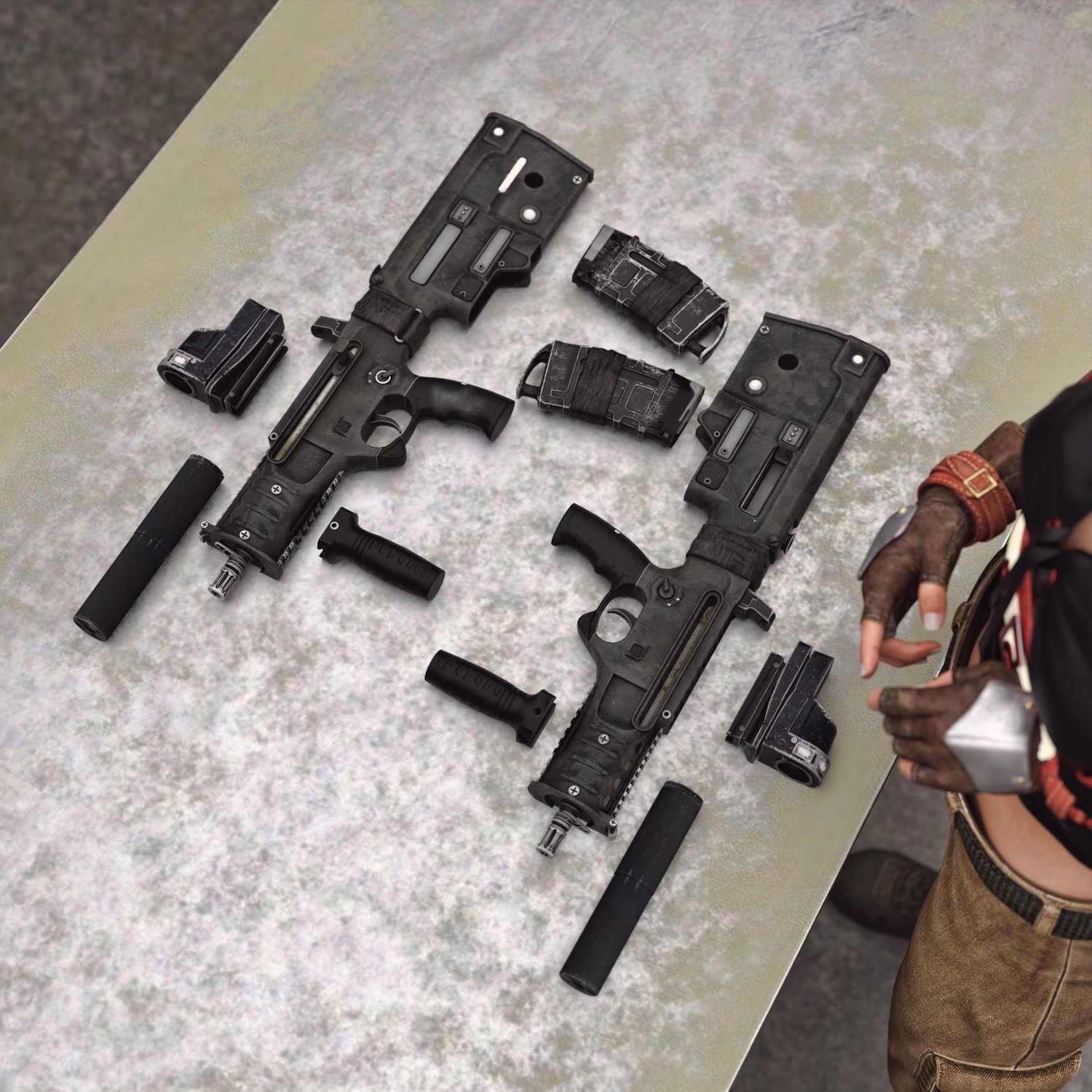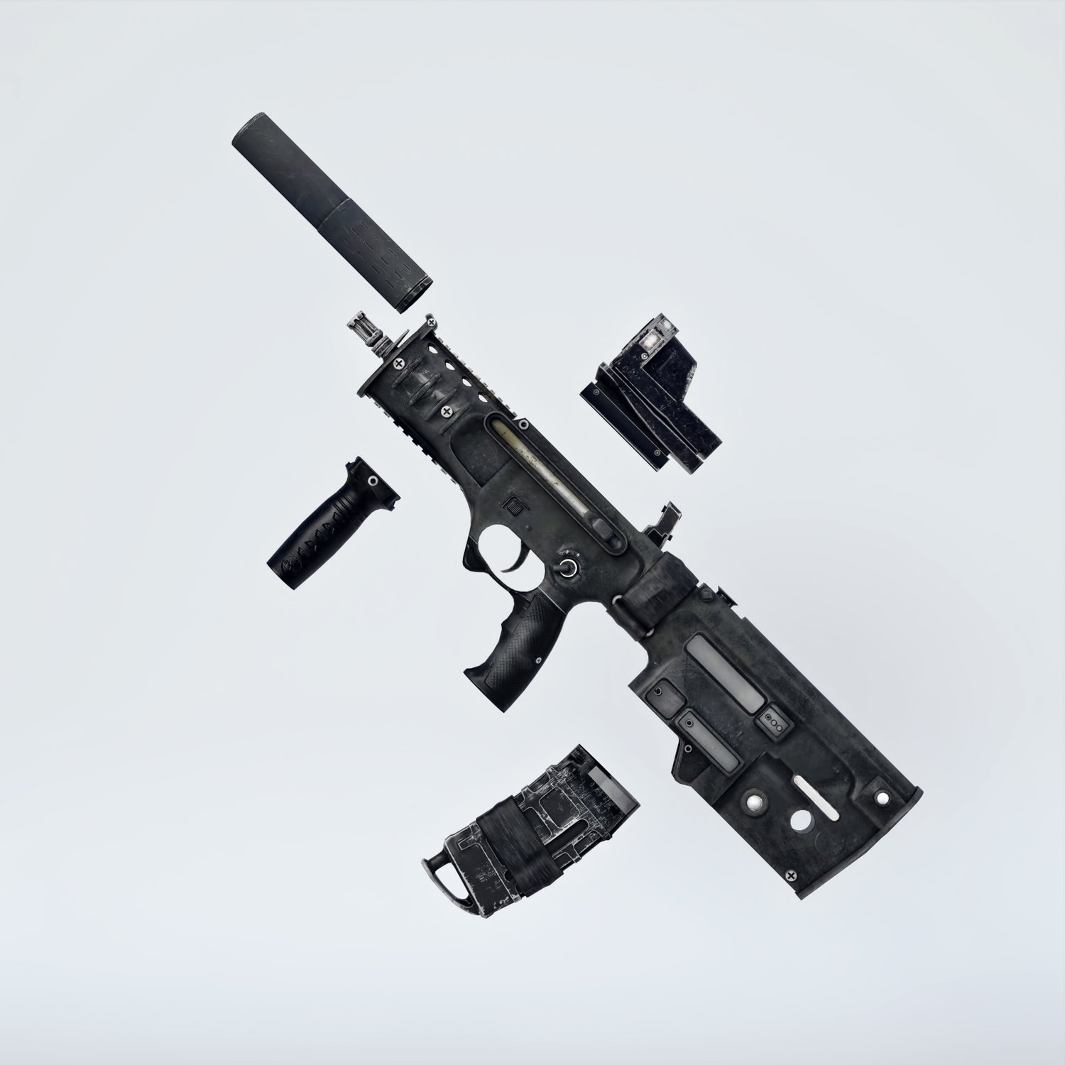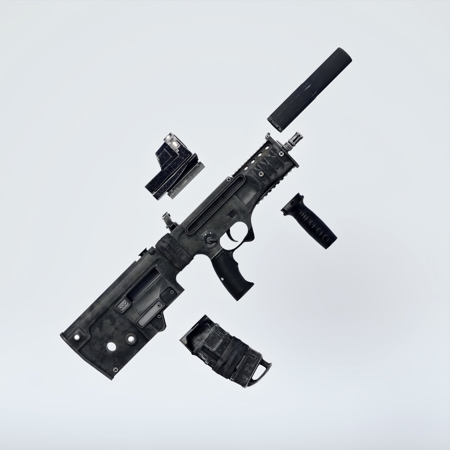 A cool tactical short assault rifle. Picatini rails, sights, body, compact size. Includes a red dot and a silencer for covert operation. Converted and rigged for use in DAZ. Trigger, stock, safety, bolt, cover etc also rigged for more realistic pictures.
