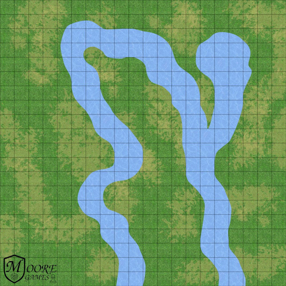 This is the second set of modular pieces I designed for my basic grass map (also available to download for free)! These pieces can be laid down on the map to create many different winding rivers in an unlimited number of various routes! Print out multiple sheets to give yourself even more options, all for free! The grid size is 1 in. x 1 in.