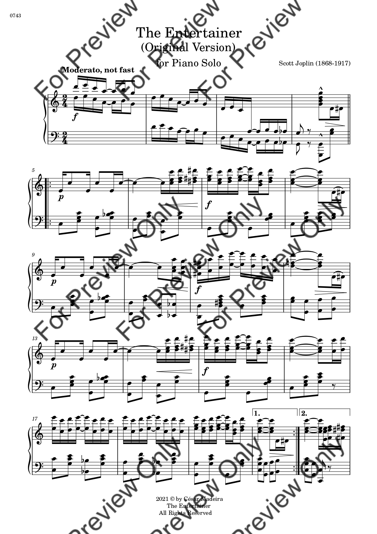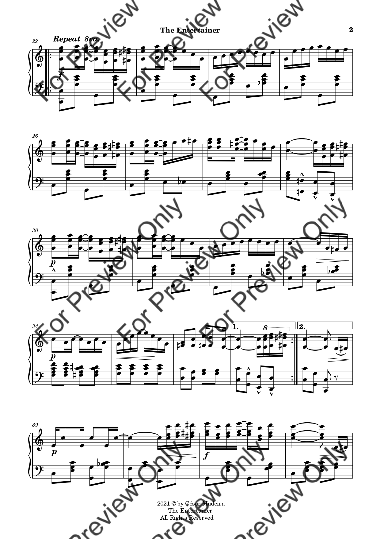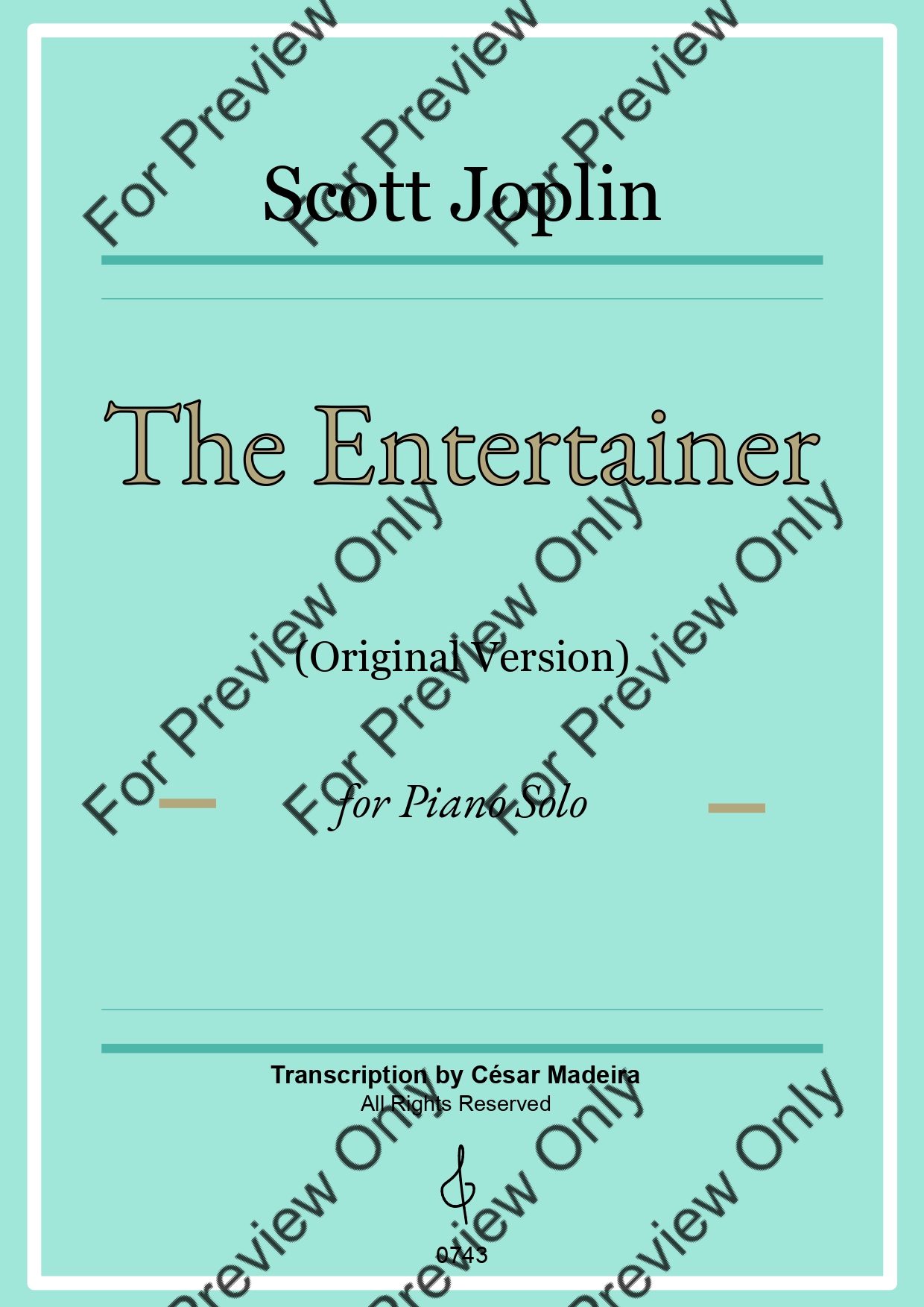 The Entertainer by Scott Joplin. Arrangement for Piano Solo. With Full Score. Have fun!