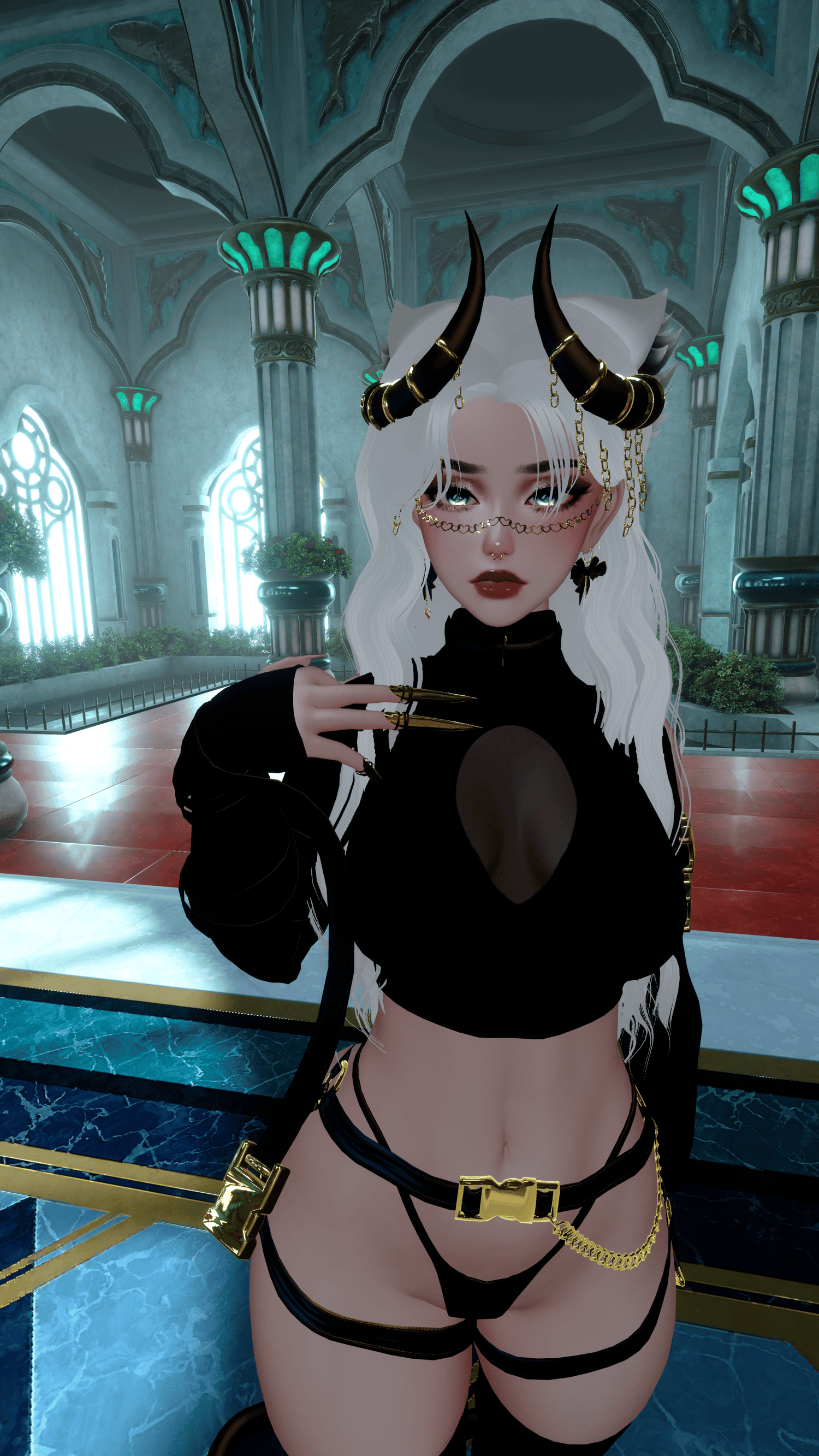 Long Sleeve Crop topHarnessShoesCollarHeelsSkirt & TopBraEyesBody Edited - No Reuse.Head Edited - No ReuseEarrings Custom (Her Shop)FurFace ChainPantiesHornsEarsTailHair 1Hair 2Head Texture