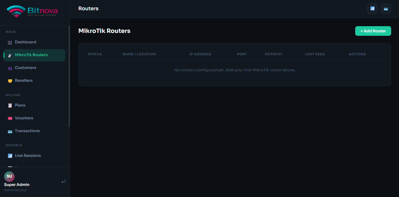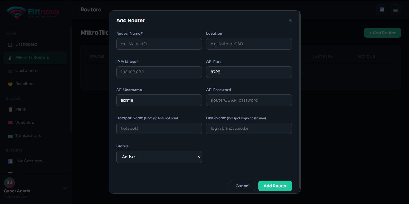 - MikroTik Configuration: Connecting your routers via API for real-time control.