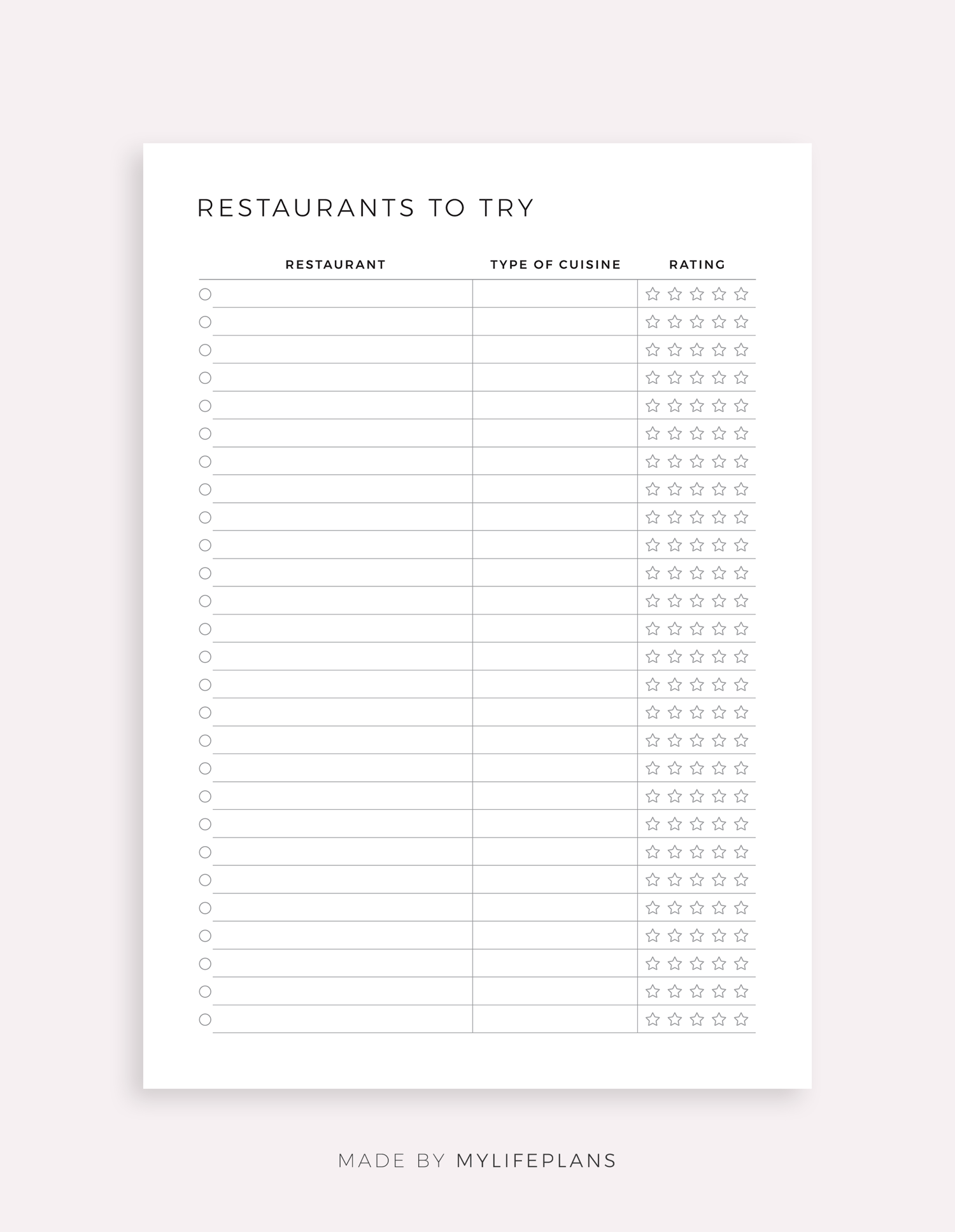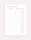 This is a printable restaurants to try planner — just download, print, and start using it right away.