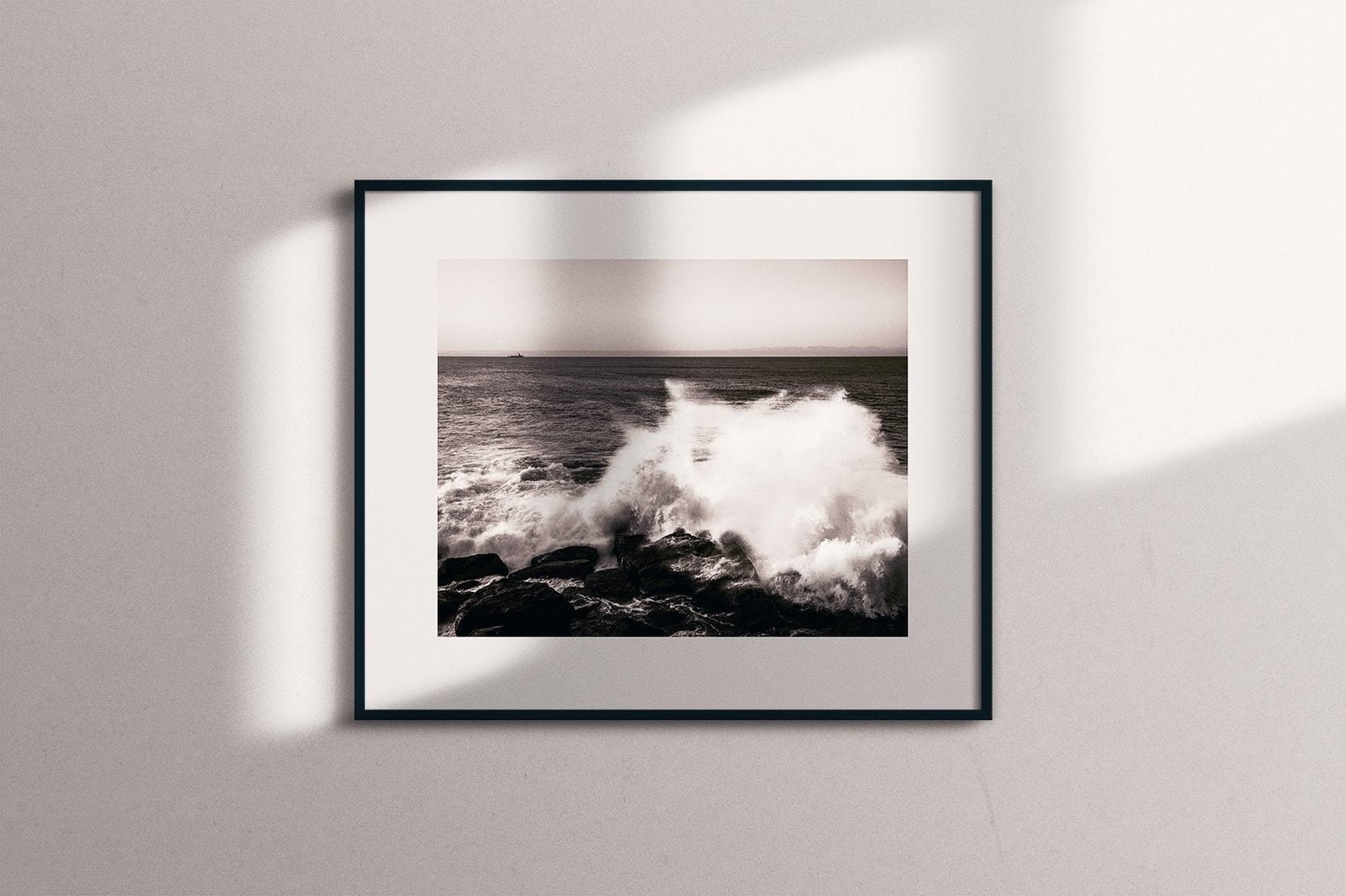 Ocean wave print | Coastal print wall art instant download black and white canvas wall decor