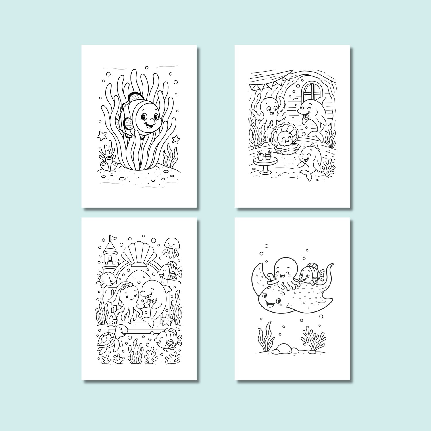 Dive into a world of cute underwater fun with this Cute Ocean Creatures Coloring Book Duo!