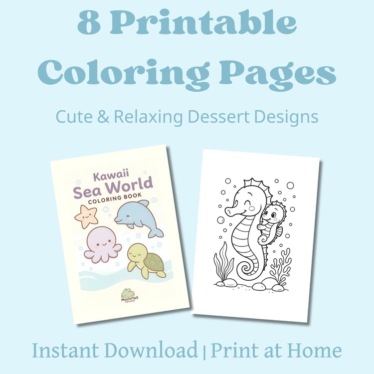 This bundle includes 2 mini kawaii-style ocean-themed coloring books, filled with friendly sea characters, playful shapes, and simple scenes that are perfect for all ages.