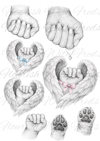 2 X ADULT HANDS - 3 X WINGS - 1 X CHILD HAND - CAT AND DOG PAWS