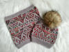 Knowledge of fair isle knitting is required (ie. reading colorwork charts and catching floats)
