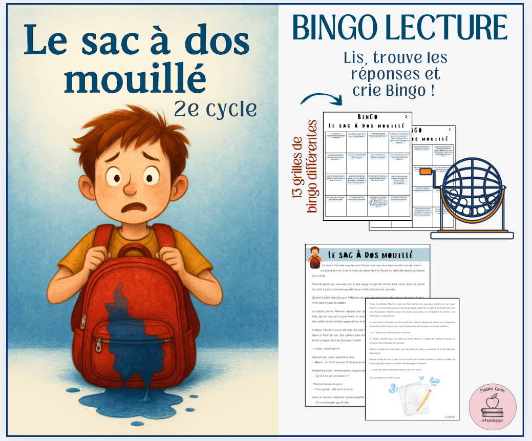 Bingo de lecture : Le sac à dos mouillé - 2e cycle