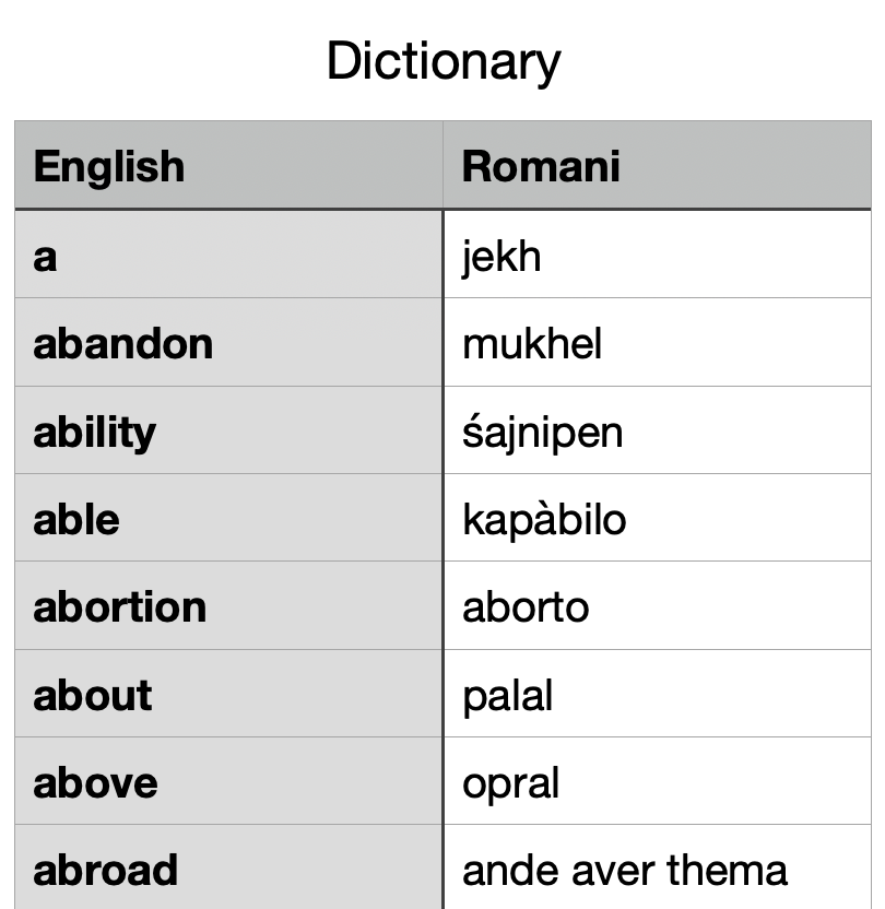 Romani Dictionary