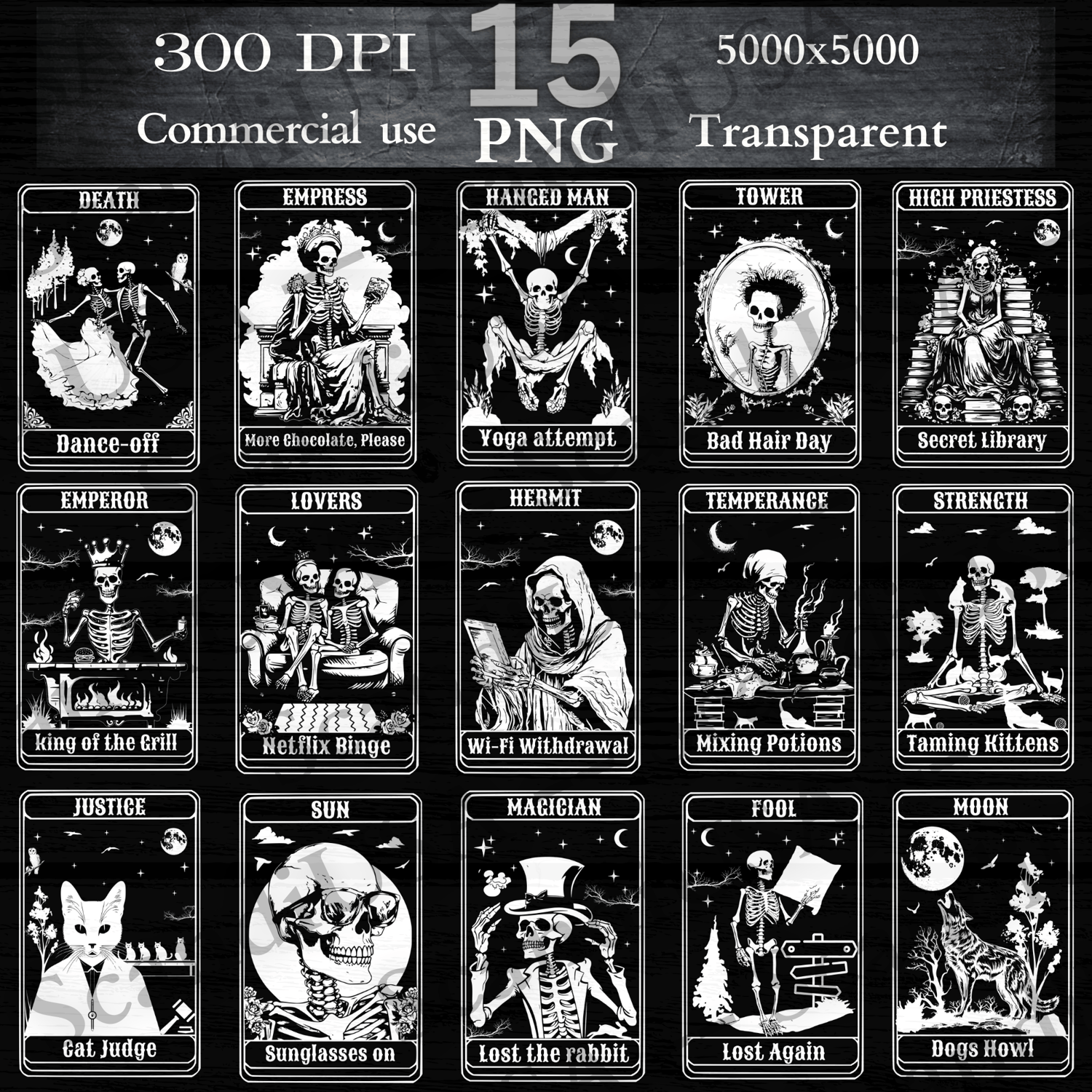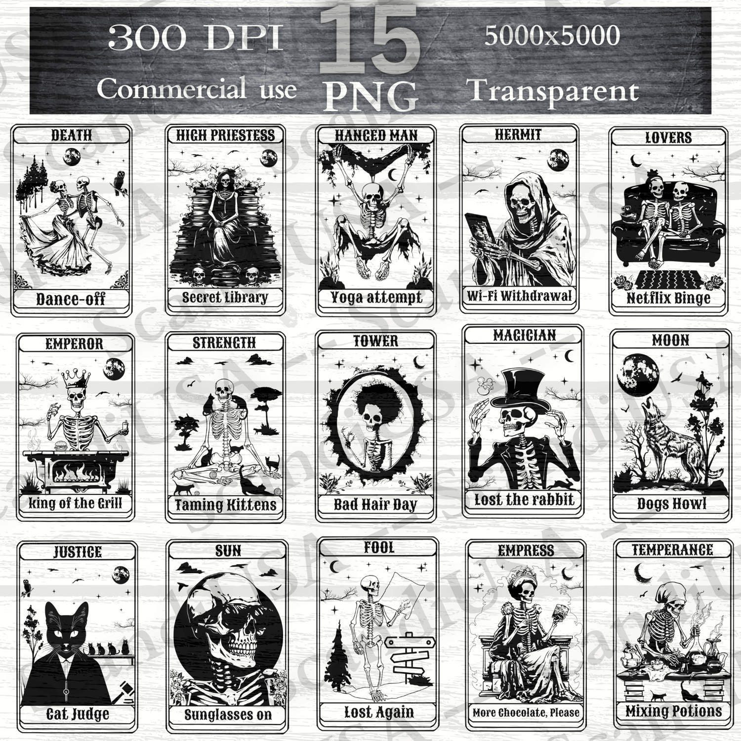 Funny Tarot Cards Bundle, 15 Black & 15 White in 1 Bundle Price