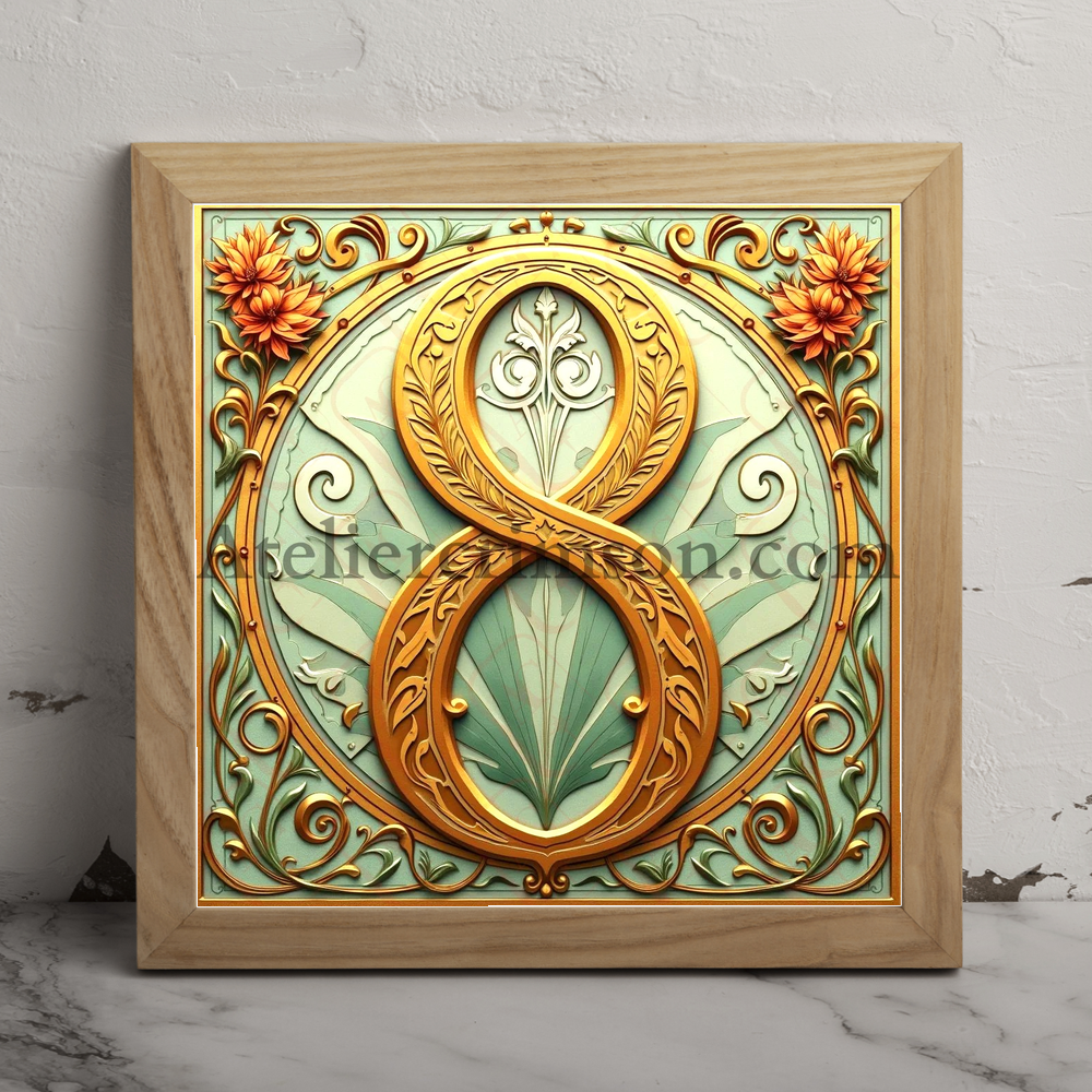 Number 8 gold metal art nouveau Download Now this high quality AI-generated image, perfect for adding a touch of tranquility and creativity to any space.
