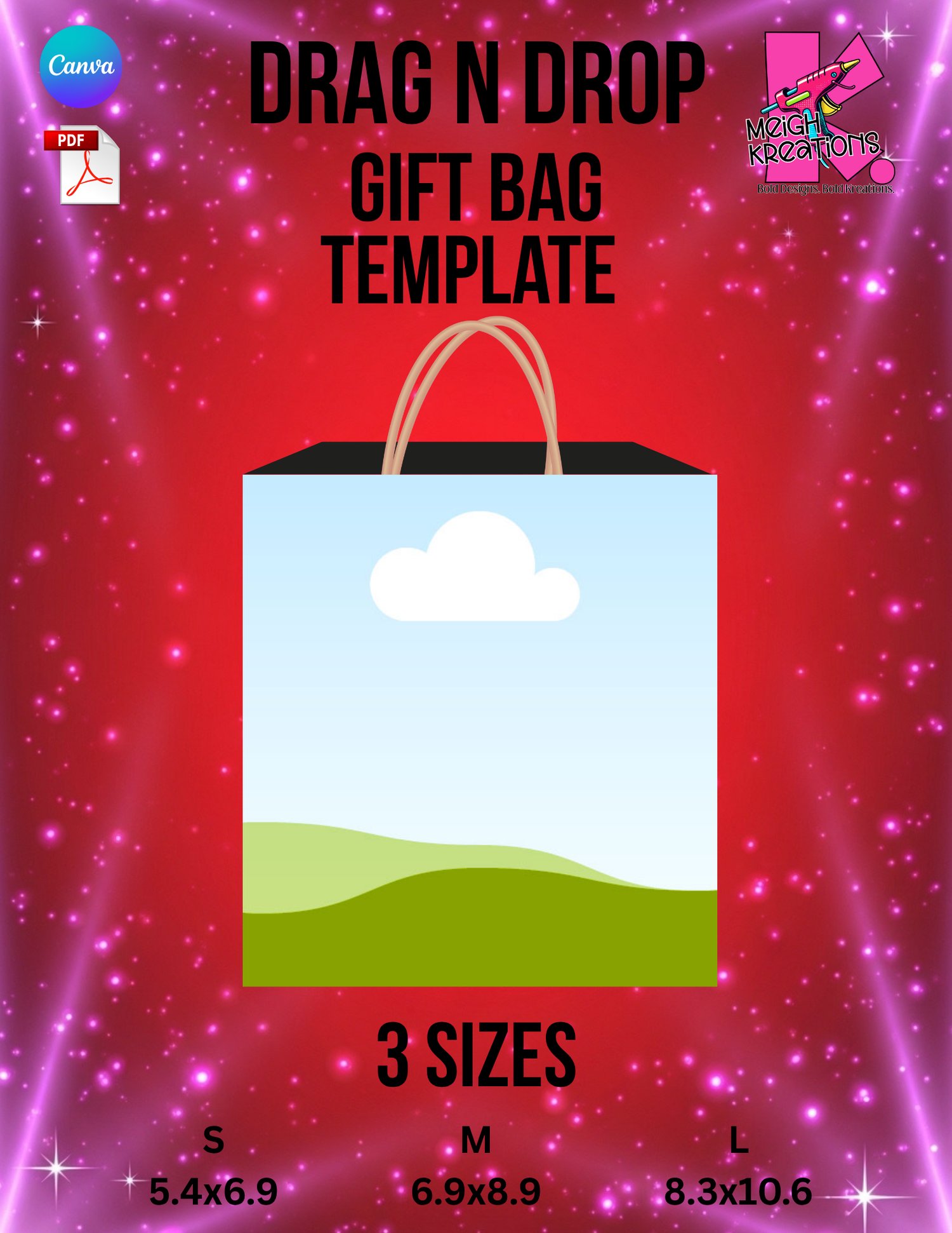 This is a Canva drag and drop template that allows you to insert your own images, designs, and themes to create a fully customized gift bag.