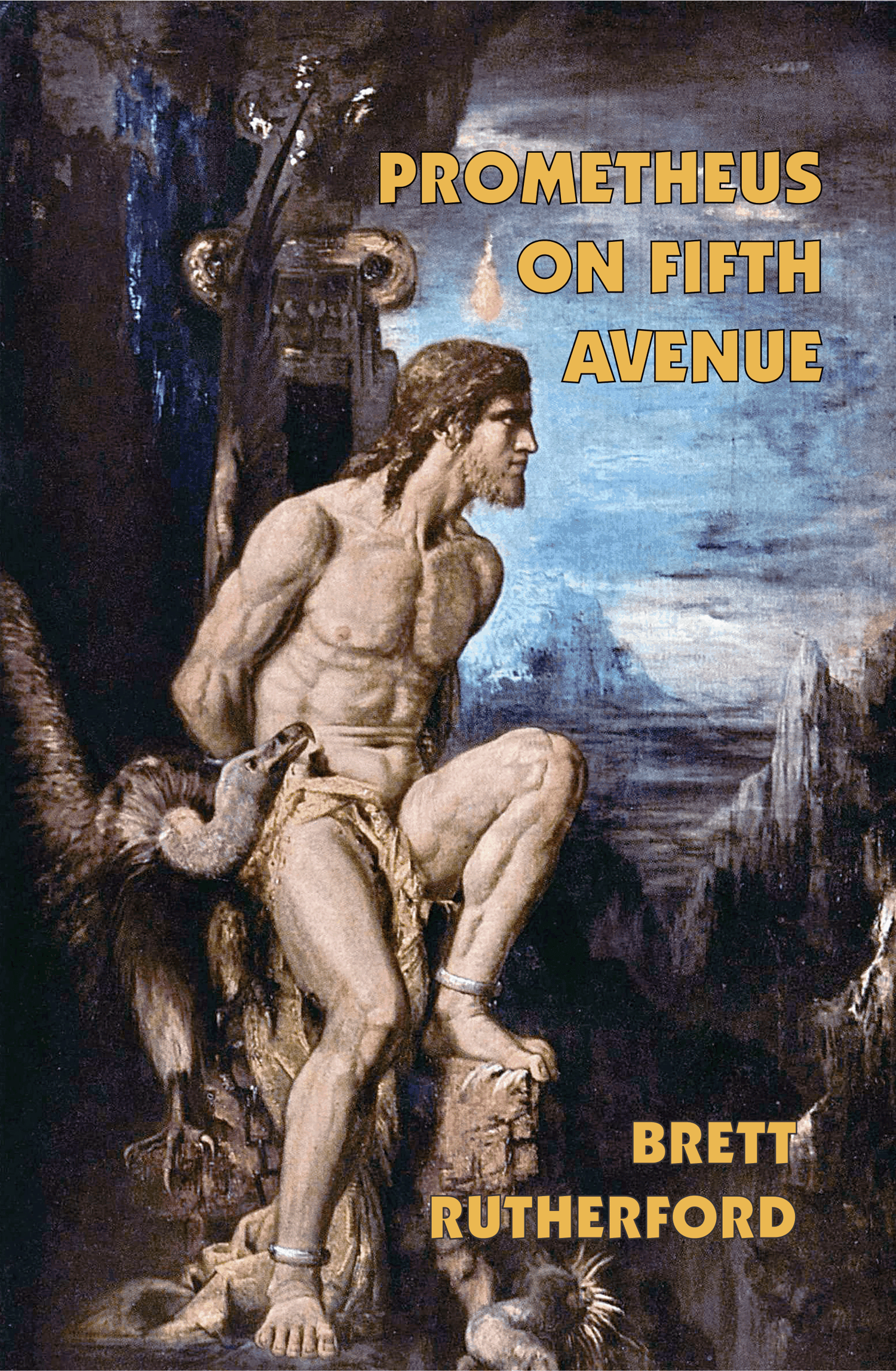 BRETT RUTHERFORD. PROMETHEIS ON FIFTH AVENUE. Poetry is dangerous, and few poets are more hazardous to complacency than Brett Rutherford. Who would have guessed that poetry — America’s most-avoided art — could come roaring back in a big, wide-ranging book of provocative, understandable, beautiful poems? This book may change how you think about poetry. Praised by Robert Bloch and Ray Bradbury for his dark and supernatural poetry — of which there is a good chunk in this book — this poet is also much more than a master of the macabre. His autumn poems, and other writings centered on nature, astronomy, and the human place in the cosmos, are heir to the grand tradition of such diverse masters as Shelley, Whitman, Hugo and Jeffers. Although the poems are mostly free in form, they are striking in language and Romantic in spirit. Whether contrasting the heroic statue of Prometheus in Rockefeller Center with the gloomy Gothic pile of St. Patrick’s Cathedral, listening in on the bitter arguments between Prometheus and his tormenter Zeus, or speaking in the voice of the doomed Queen Jocasta, these are works that tell stories and tell them clearly. A set of poems from the poet’s childhood and young years in Pennsylvania, provokes the reader to re-think “imaginary playmates,” to re-live the anguish of doomed obsessions, and to revel in tree, forest, lake, and graveyard in his “first-found home.” Another sequence of love poems are sad, astronomical, haunted, and transcendental, culminating in the challenging poem “Triptych.” This book, containing poems written or revised between 1991 and 2004 in New York City and in Providence, RI, first appeared in 2005, released simultaneously in print and as a free PDF download. More than 15,000 copies were distributed to a world-wide audience. In this new, second edition, the poet has revised a number of the poems, and split the book into two parts (The Gods As They Are, On Their Planets is the first half.) Take up this book, take a deep breath, and plunge in.