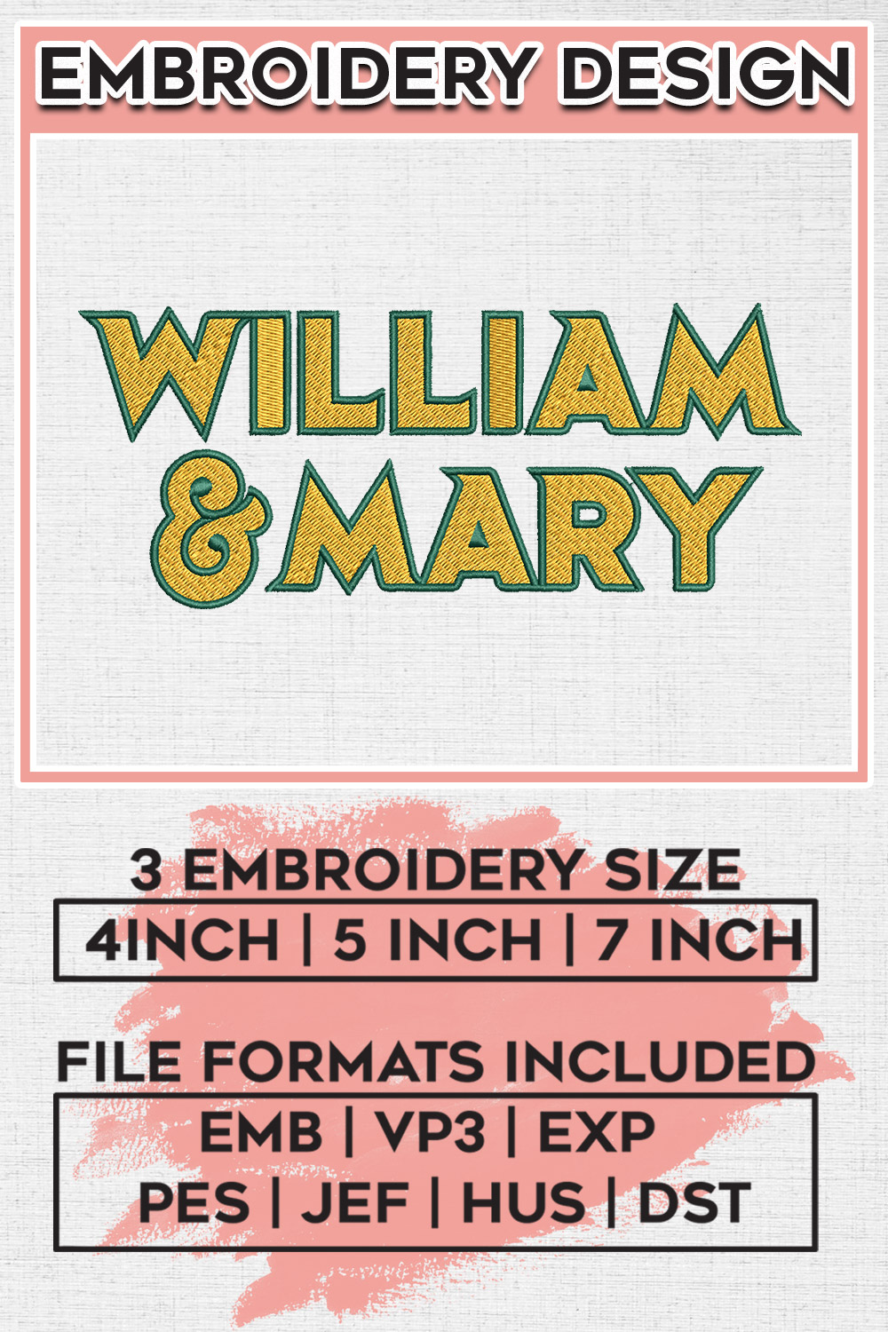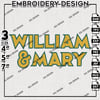 William & Mary Tribe Wordmark Machine Embroidery Designs, NCAA William & Mary Tribe Embroidery Designs, NCAA Logo embroidery designs, Ncaa W&M Tribe Logo, Digital Download