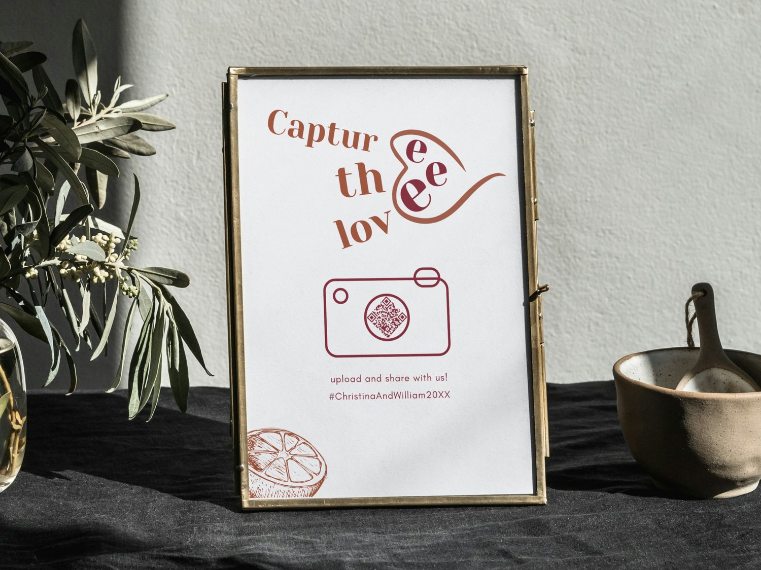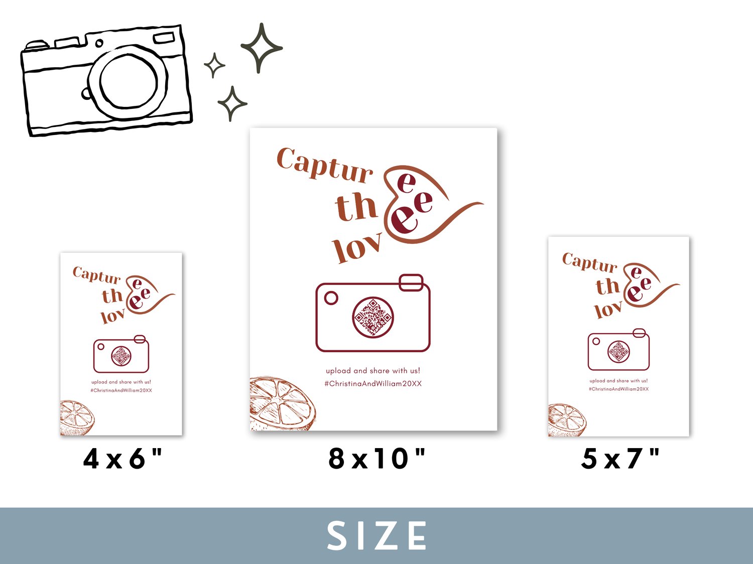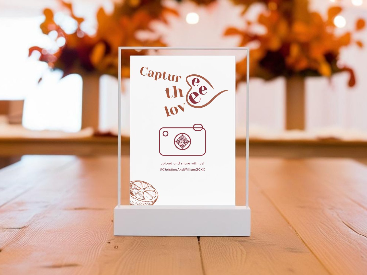 Autumn Wedding QR Code Sign Canva Template Photo Sharing Sign For Entrance Reception Capture The Love Printable Fall Table Decor Modern 005