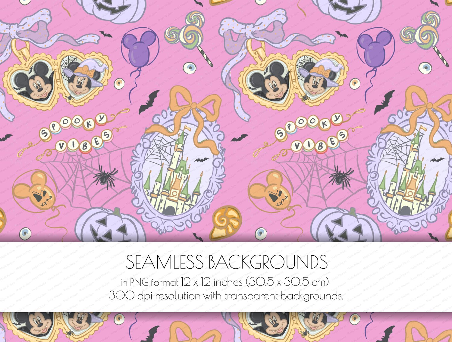 1 Halloween Heart Locket, Disney Mickey Mouse Seamlessbackground in PNG format 12 x 12 inches (30.5 x 30.5 cm) 300 dpi resolution .