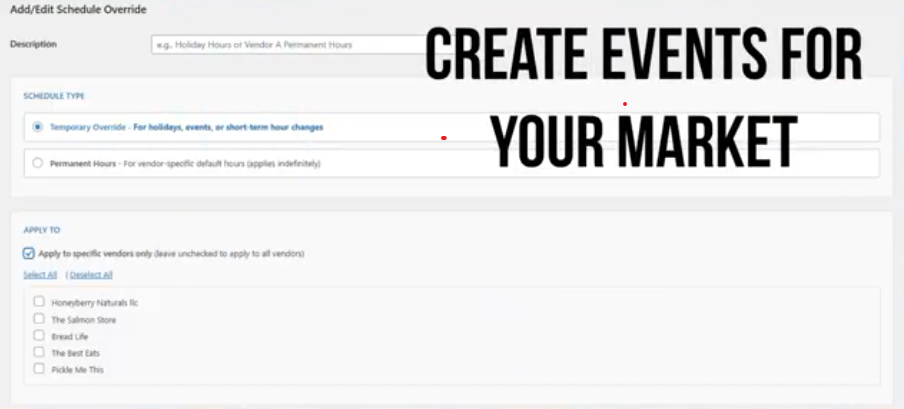 Markets that join our Farm Fresh Network platform receive the Market Hours Override Plugin, as well as all our digital tools, at no additional cost.