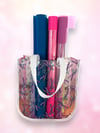 The Trystal Tote is a fun, unlined catch-all tote that does not require any hardware. The finished dimensions are 11" wide by 11.5" tall by 5" deep. It includes written instructions, photographs, printable pattern pieces and cut measurements, where applicable.
