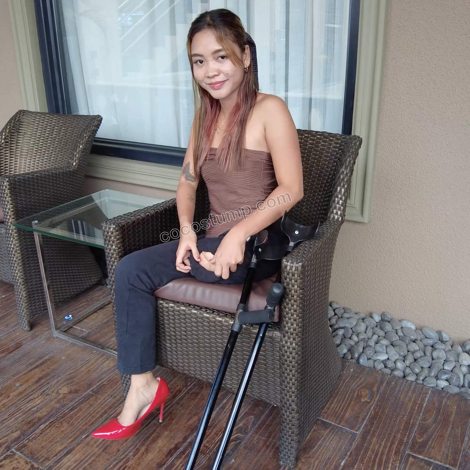 Trixie fold up her pants and she is crutching downstairs in a single red heel. She is taking a rest at the pool and relax. 20 min, 2160p.
