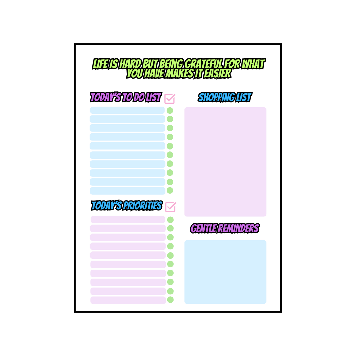 With a Digital Download that is easy to print and even re-print, you no longer have to worry or rely on technology to keep track of your daily tasks.