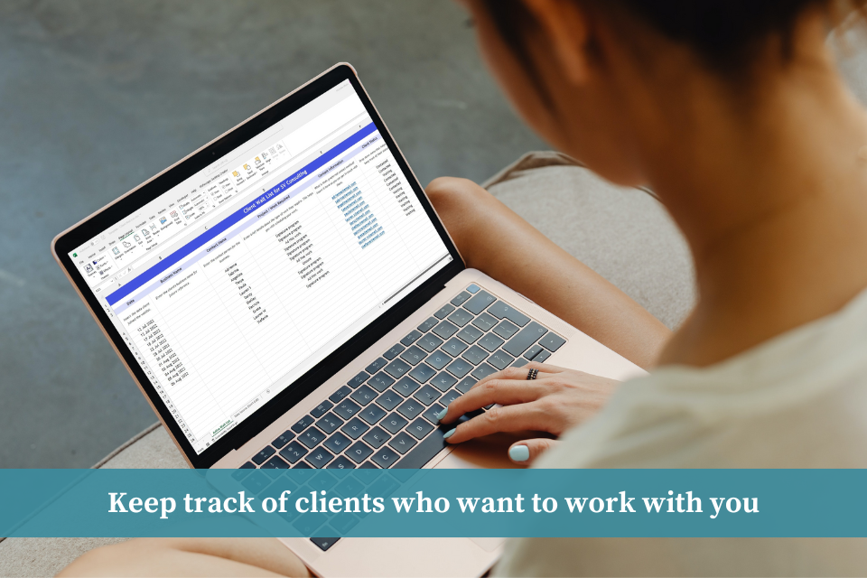 This product is an Excel spreadsheet template designed to help you capture key information from those clients so you can get in touch with them later on - when you do have the space for them.