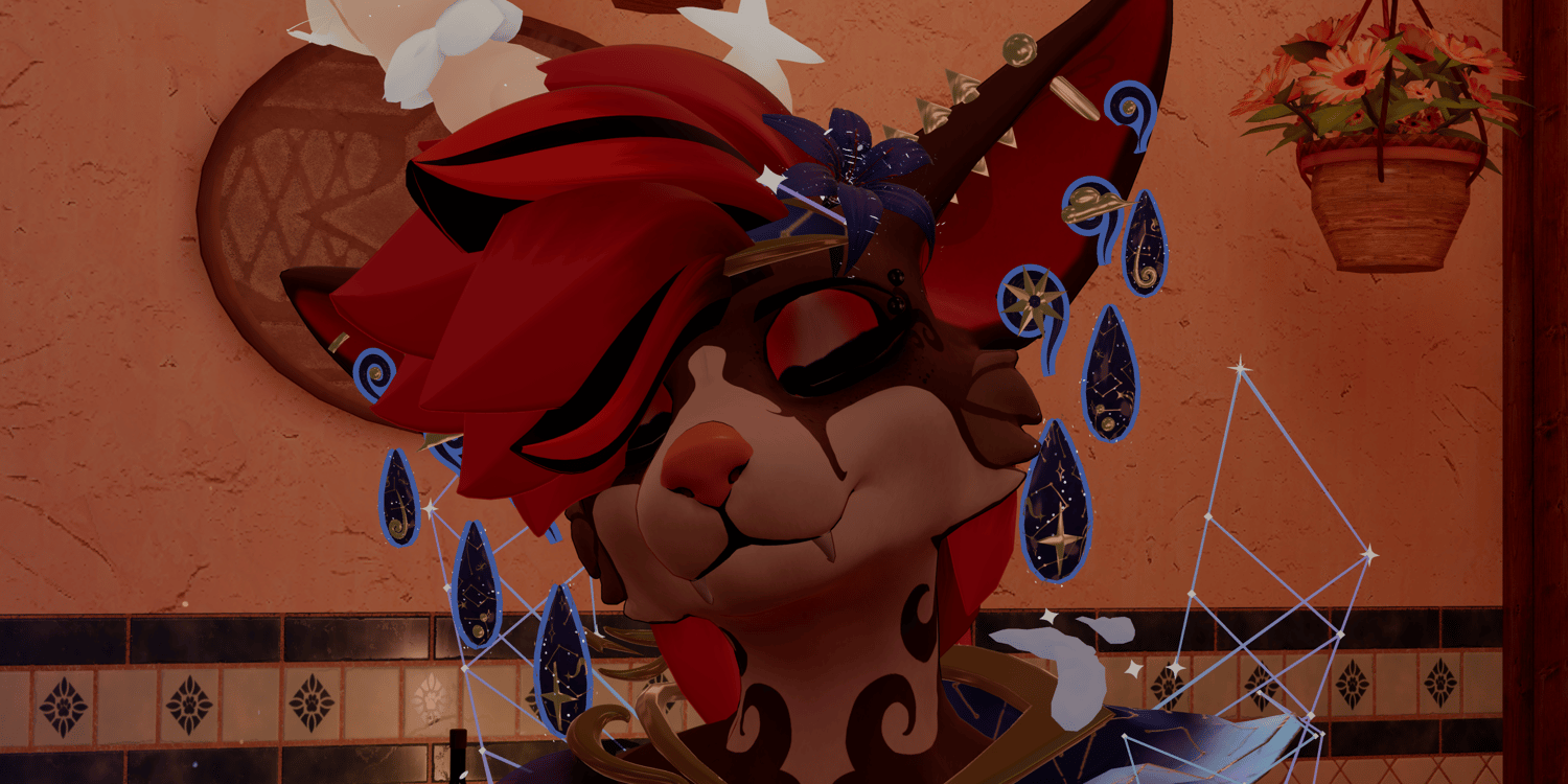 Stylized earrings I made to wear to Furality Somna! They can be fit onto any big ears, but do include a prefab that fits the Viwi!