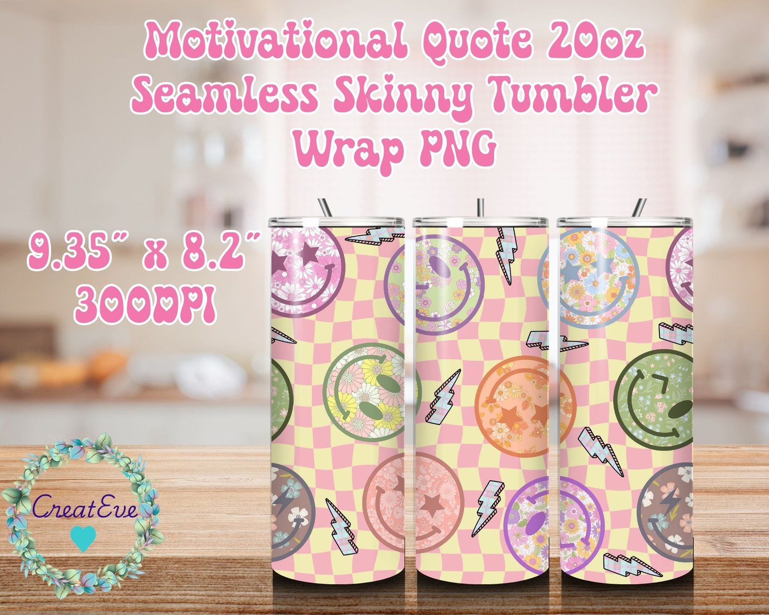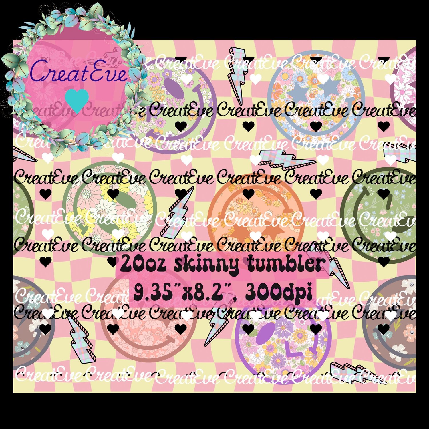 Preppy Retro Emoji Seamless 20oz Skinny Tumbler Wrap PNG